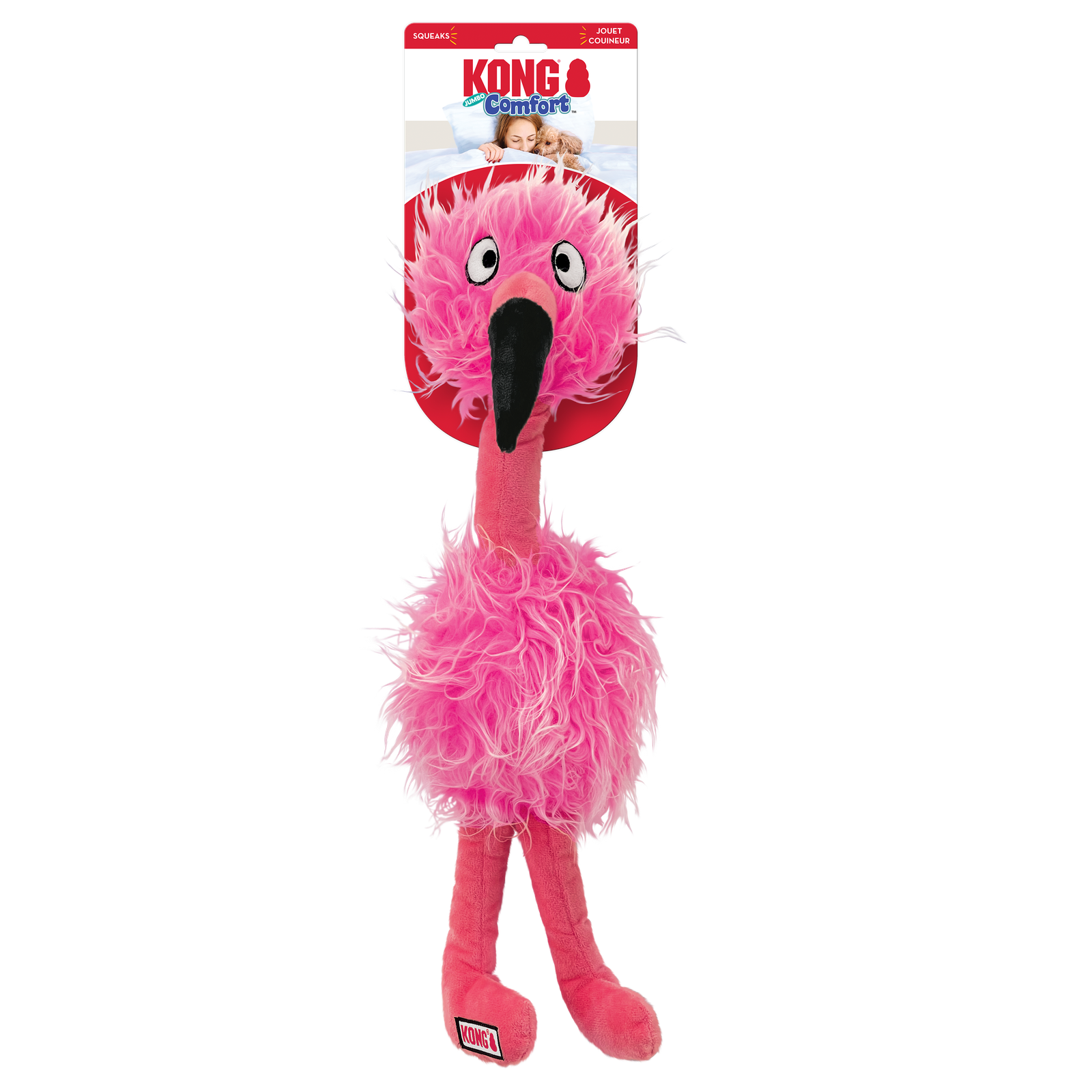| KONG Comfort Jumbo Bird’s gigantic size and long, dangly body are great for flights of flopping fun that satisfy shaking instincts. A squeaker in the head and belly fuel flapping fun with a silly friend whose soft, long plush and soft body make for soothing snuggles when it’s time for a rest. |
