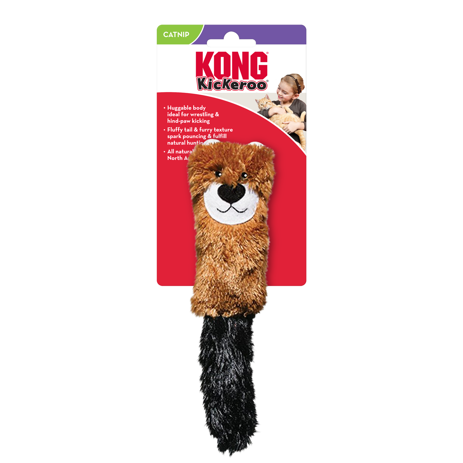 | This Kickeroos sized especially for kittens with a long body that encourages lots of healthy hind paw kicking, promoting full-body action for growing cats. Fluffy tail sparks hunting instincts while crinkling sound and KONG Premium North American Catnip crank up the fun for extended play. |
