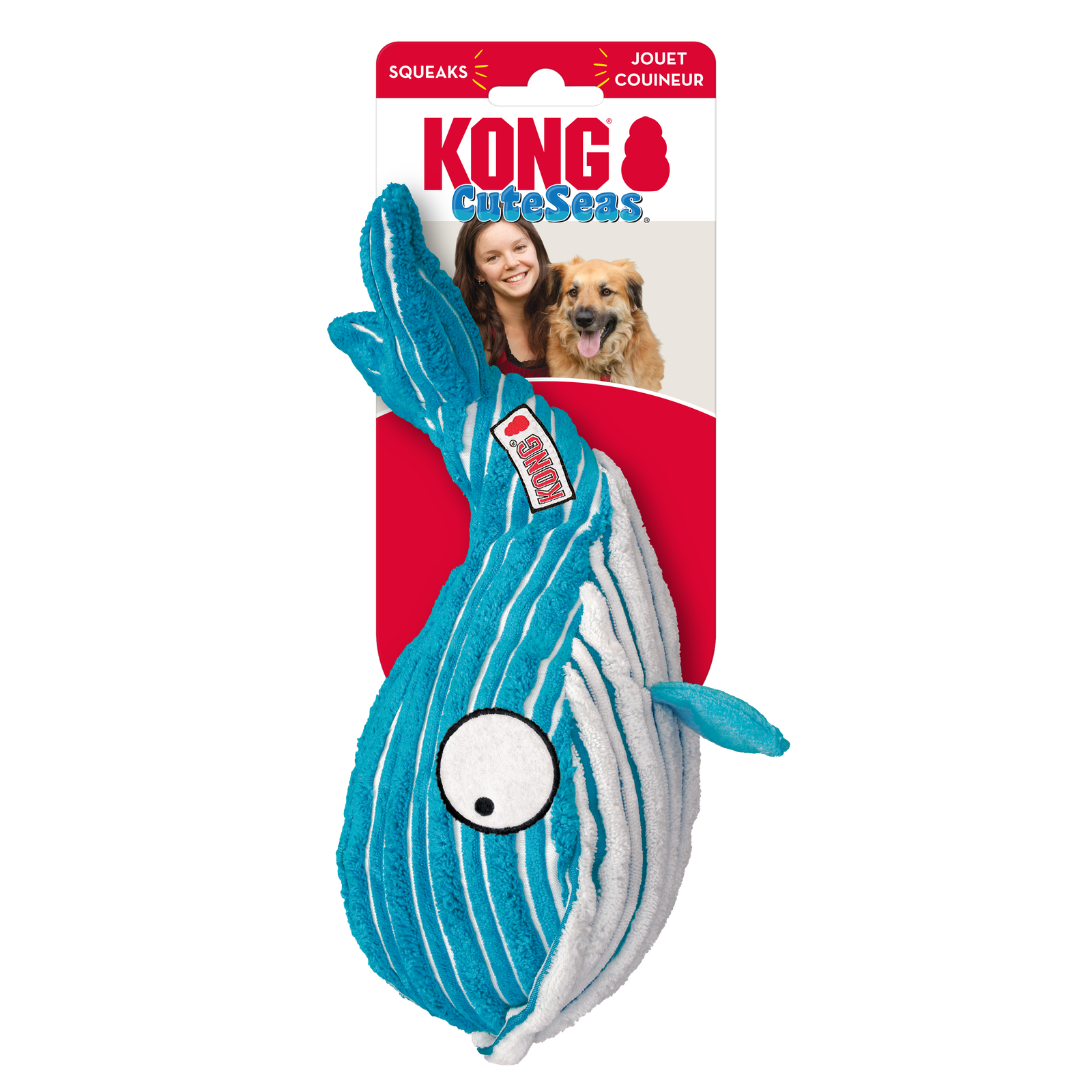 Cuddling with sea creatures has never been this cute. KONG CuteSeas are made of soft corduroy for snuggling. They also contain a squeaker and make a crinkle sound during playtime.