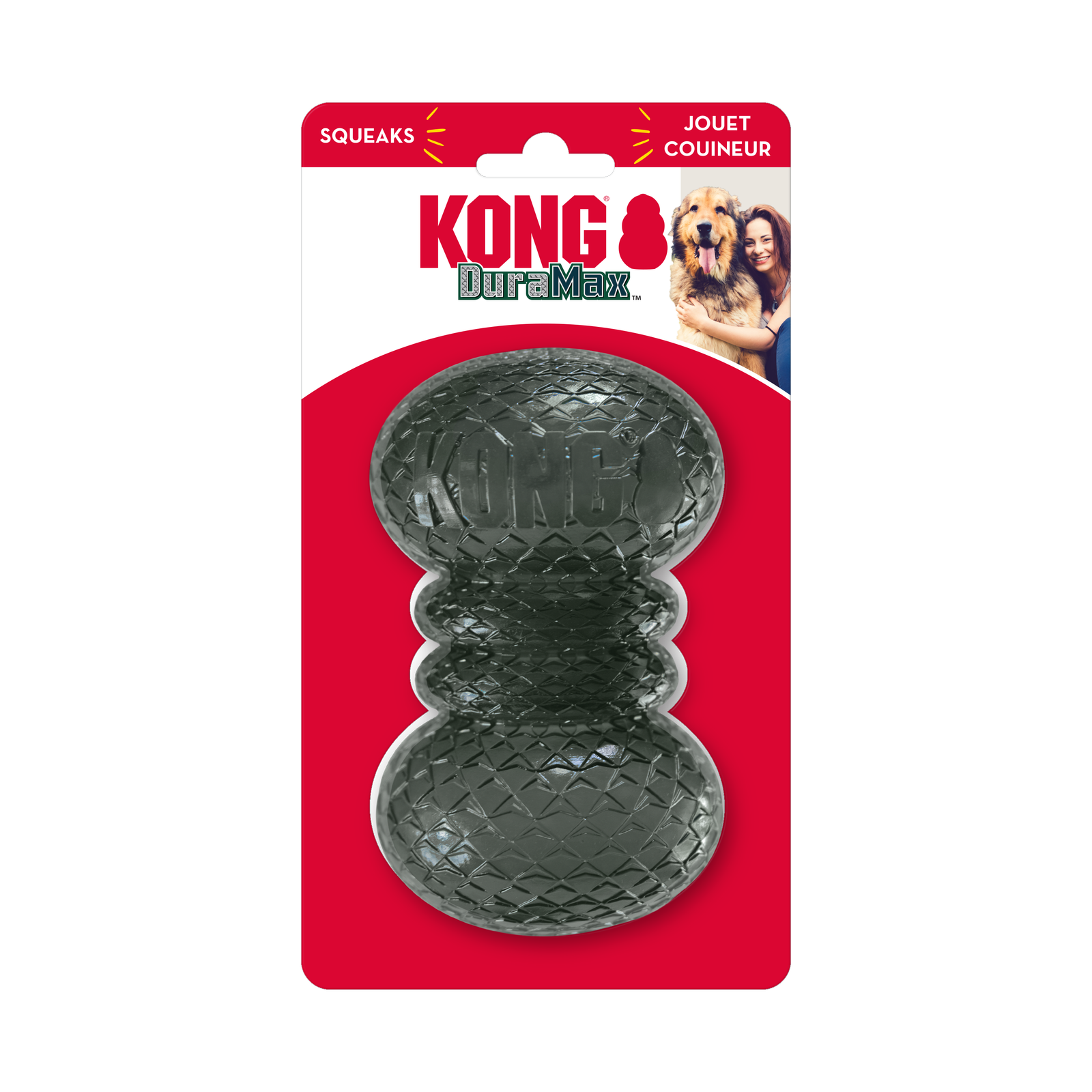 | Made to endure and satisfy those dogs that can’t spend enough time chewing, the KONG DuraMax Dumbbell features the ultra-durable KONG-crafted K-100 material that gives just enough flex to make it irresistibly satisfying while standing up to long-lasting chew sessions. Dogs delight in the feel of the textured surface and ridges that have the added benefit of helping clean teeth. A squeaker adds to the fun and keeps dogs engaged for long-lasting chew and play sessions. |