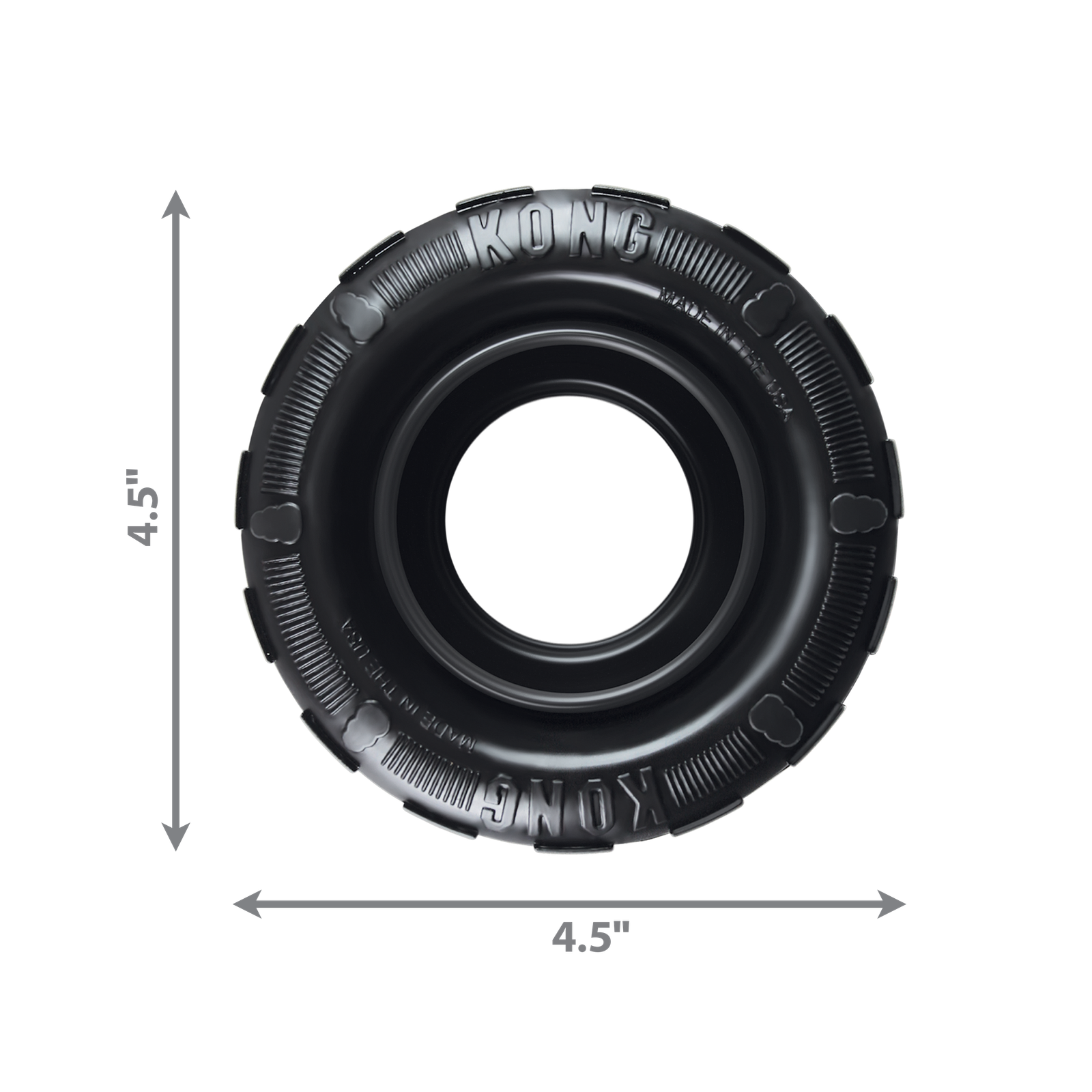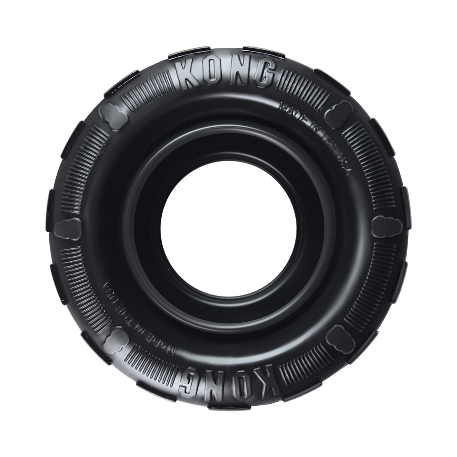 KONG Tires is a durable tire chew designed to provide the ultimate chewing experience. The uniquely shaped sidewalls and thick outer tread create a super durable, elastic barrier. The sidewalls are designed to double up and rebound when compressed to provide an active chewing experience, and the Tires are perfect for bouncy games of fetch.