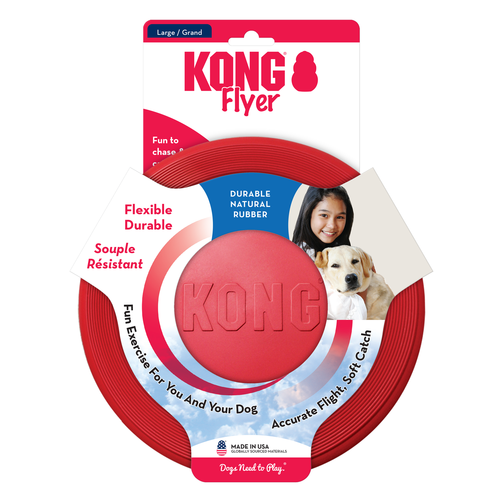 KONG Classic Flyer is made for fetching. It is made of durable KONG Classic rubber which allows for a forgiving catch, plus the material delivers a dynamic rebound just in case your dog misses the initial toss. Let your dog’s love of fetch take flight with a safer disc that delivers tons of healthy activity.