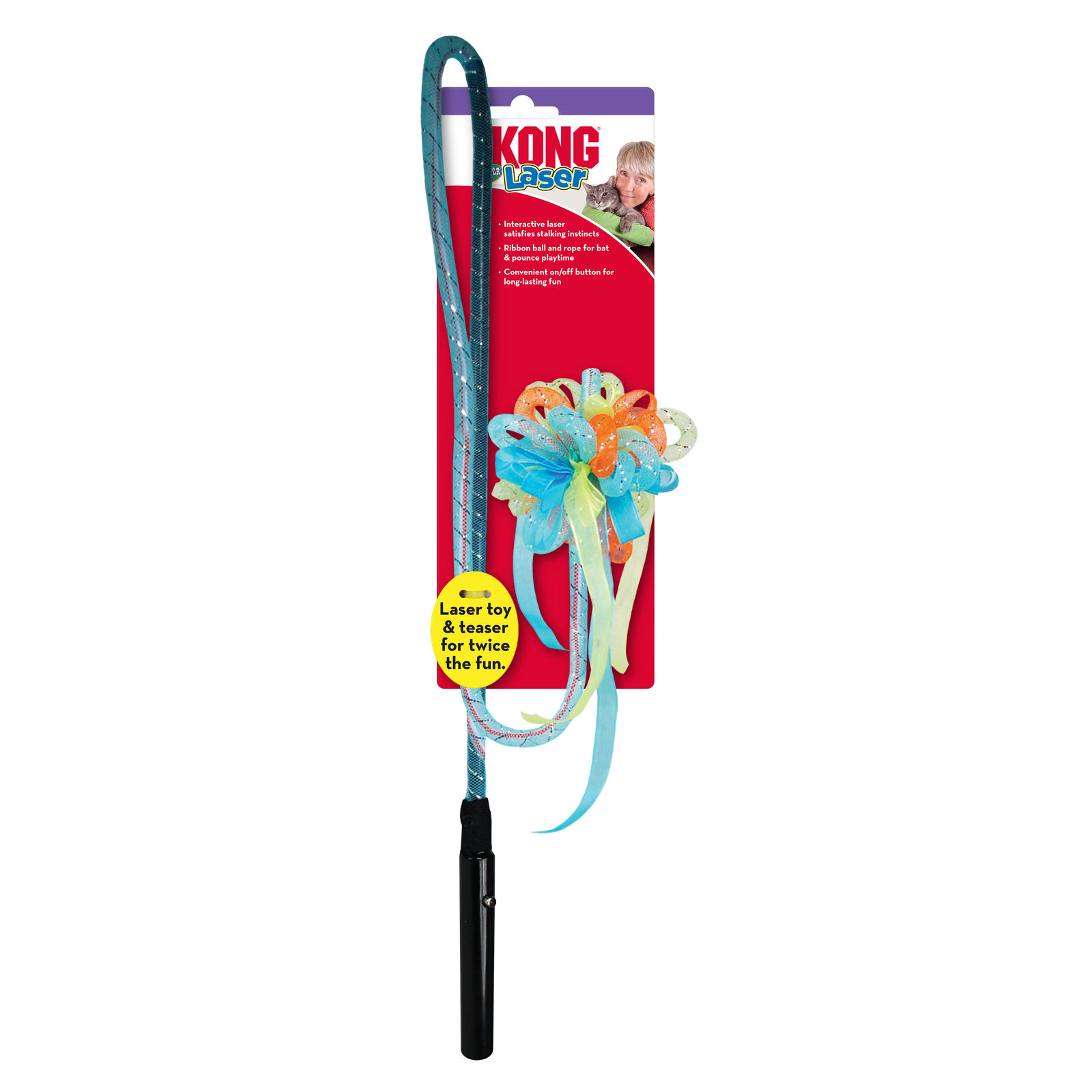 | KONG Laser Teaser Ribbons is a festive teaser that engages cats in interactive fun. The unpredictable motion and light tempt cats into chasing and pouncing play sparking natural hunting instincts. A ball of ribbon gives kitties the satisfaction of capturing their target. There is a convenient on/off button that ensures that playtime will last longer. Batteries included. |