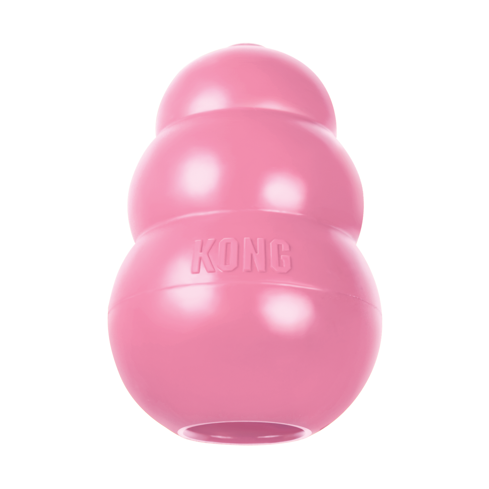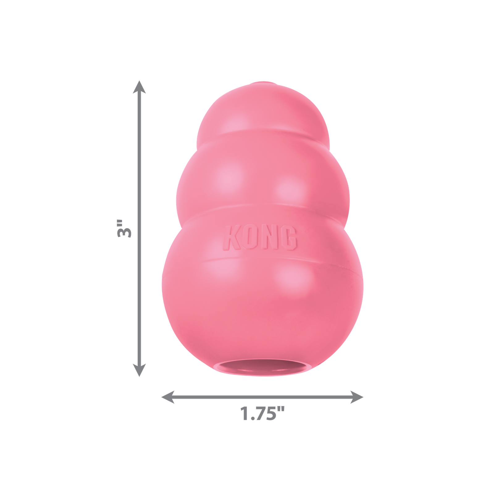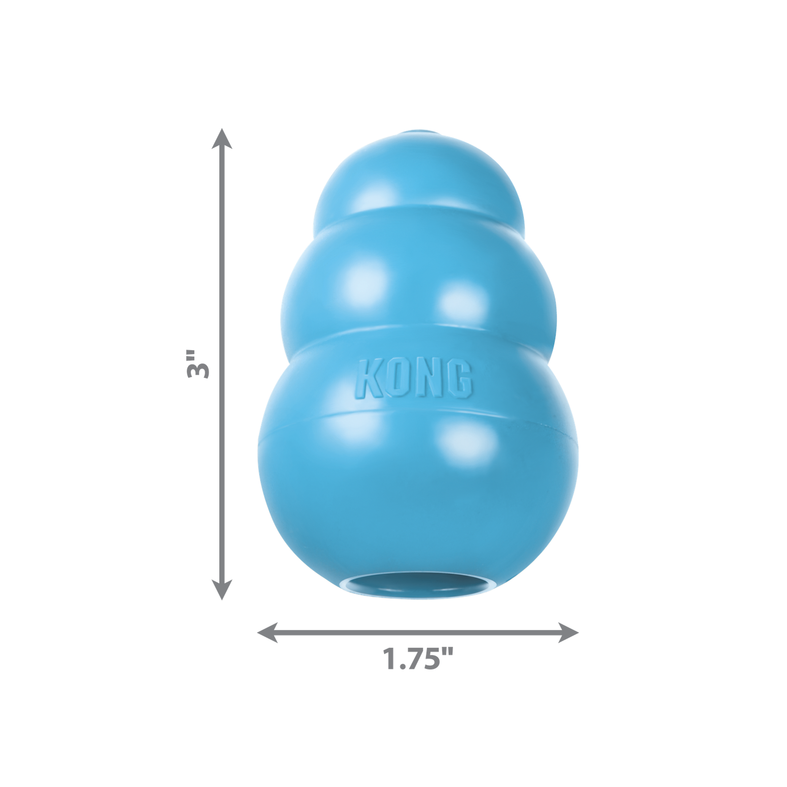 | The Puppy KONG dog toy is customized for a growing puppy’s baby teeth, the unique, natural rubber formula is the most gentle within the KONG rubber toy line. Designed to meet the needs of a puppy’s 28-baby teeth, it helps teach appropriate chewing behavior while offering enrichment and satisfying a younger pup’s instinctual needs while the erratic bounce make it ideal for those pups that just want to play. A stuffed Puppy KONG occupies busy little ones while allowing pet parents the freedom to attend to their unique needs. Want to make crate training easier or extend play time? Be sure to stuff with puppy kibble and a dash of peanut butter. |