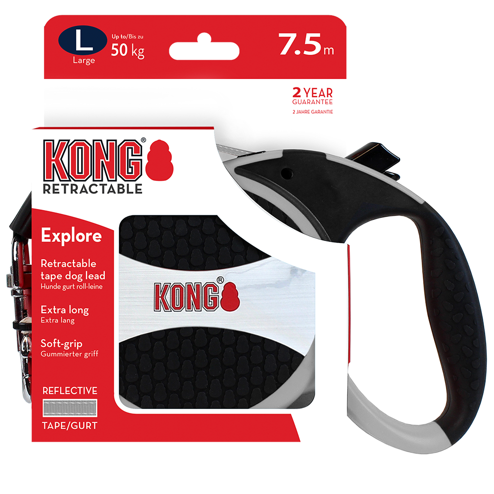 | The KONG Explore Retractable Leash is designed to give your furry friend the opportunity to sniff, roam, and wander to their heart’s content. With intuitive brake + lock mechanism, you’ll have complete control while allowing your dog to enjoy their natural walking motions. |