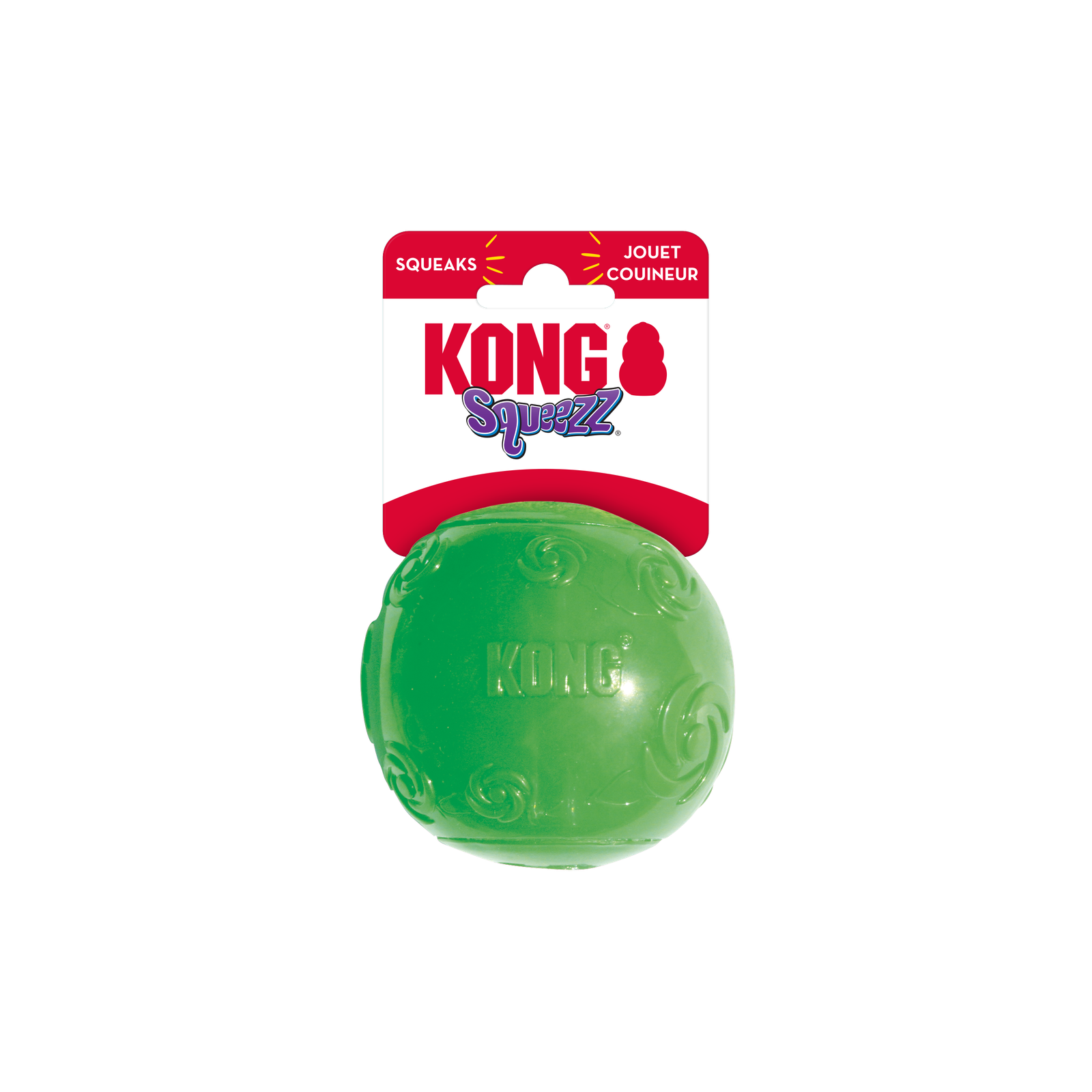The KONG Squeezz® Ball is a great dog toy for fetch. The fun bounce and recessed squeaker provide safe play, while the grippy textures provide extra chewing enjoyment for your dog.