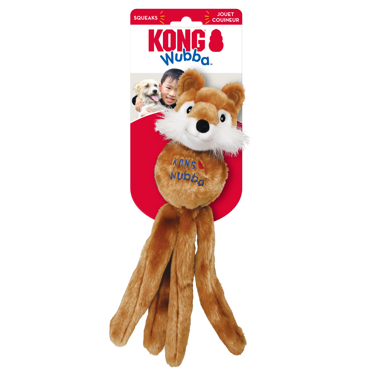 | The KONG Wubba Friends are the cutest interactive squeak and shake toys available. These versatile toys are perfect for indoor and outdoor use, and their floppy tails make them easy to pick up and throw. Each toy is covered with soft plush so they are also popular as a nighttime comfort toy. |