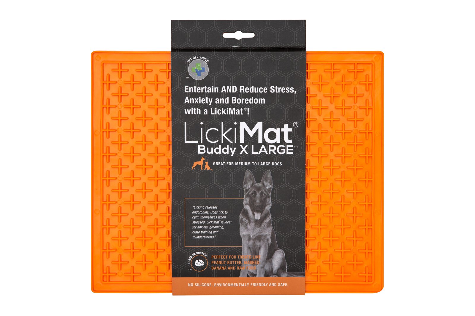 | The LickiMat® Classic Buddy™ Slow Feeder, with its cross maze design is perfect for fast eaters or pets who need more stimulation. It also works well for giving supplements and medications. It helps reinforce good behaviour, acts as a perfect aid for training and reduces anxiety. |