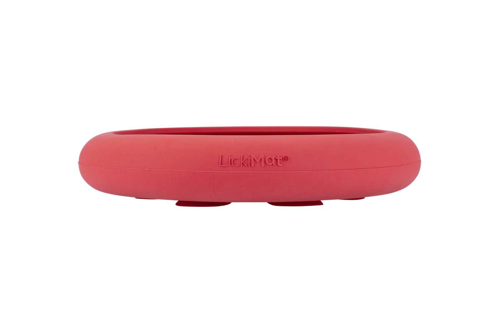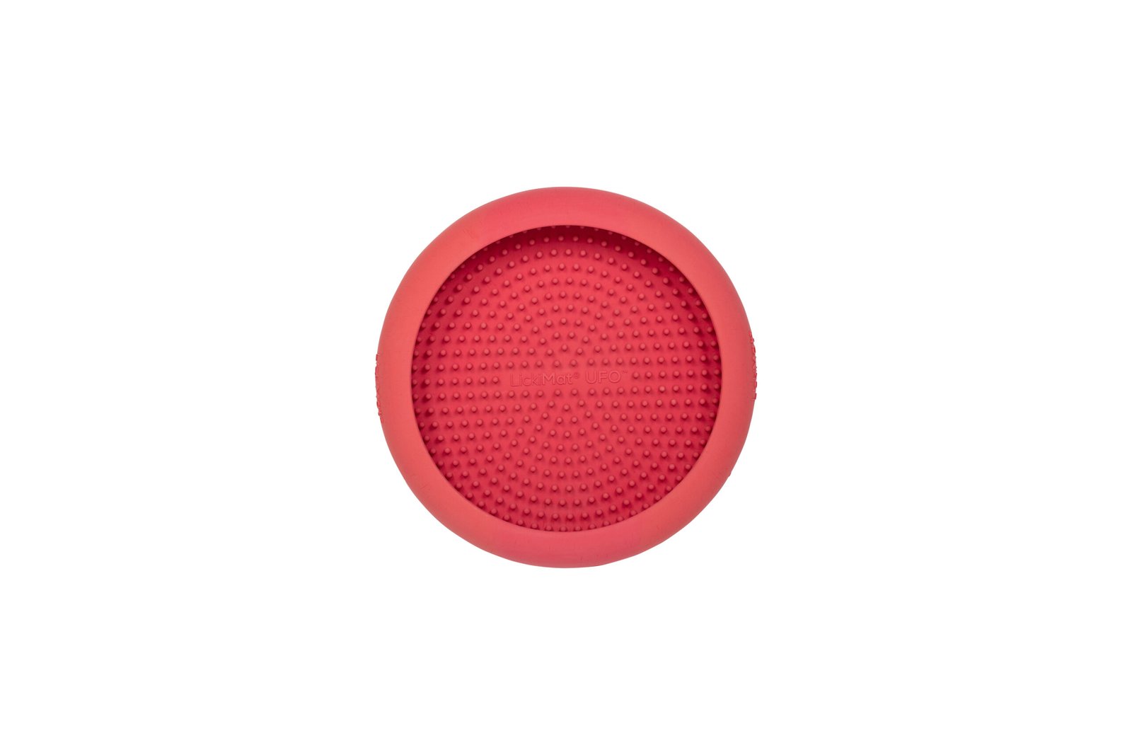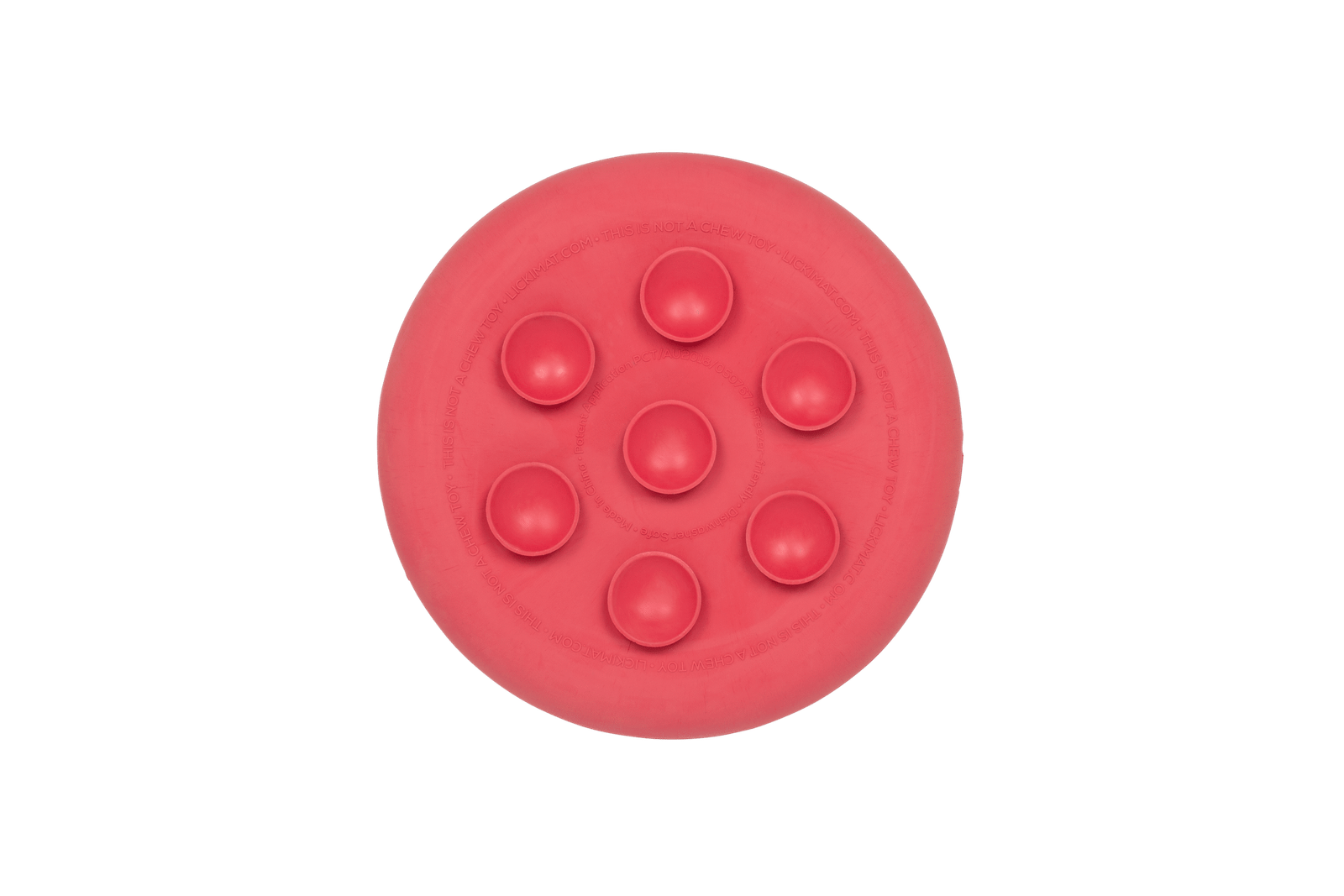 | LickiMat® UFO™ Slow Feed is an anti-anxiety dog food and treat bowl, designed with soother nubs to help pets relax when licking. This rubber bowl features suction cups on the base to stick to a smooth surface vertically (Eg: windows, shower walls) to change the positioning of the bowl for entertainment, and anxiety relief. |