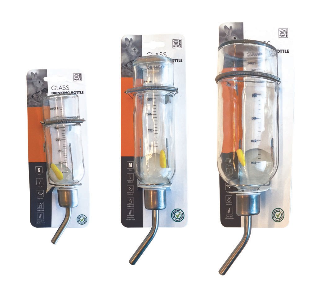 The M-PETS glass and flaska drinking bottles are  the perfect hydration solution designed with your small animals in mind.  Whether you have a playful hamster, an inquisitive guinea pig, or an adventurous rabbit, these are specifically designed to cater to their needs regardless of their breed or size. Its transparent construction ensures a crystal-clear view of the water level, while the stainless-steel sipper tube prevents leakage, keeping their living space clean and dry.