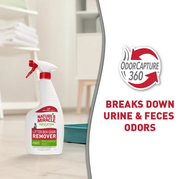 Are you tired of constantly being reminded of your cat’s litter box with the unpleasant odors lingering around your home? Nature’s Miracle “Just for Cats” Litter Box Odor Remover can help you with just that!