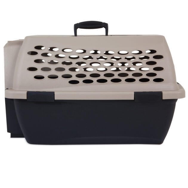 It features a tough and durable construction made with 90% pre-consumer recycled plastic, it comes with an easy-open squeeze latch door, providing secure containment. The 360-degree air flow ventilation ensures optimal comfort, while the interior moat keeps pets dry. With its easy assembly and compliance with air travel requirements, the Petmate Vari Kennel offers convenience and peace of mind. |