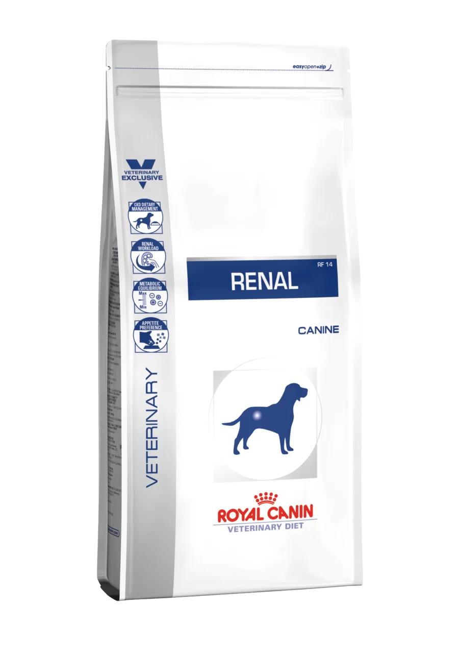 Renal support : Formulated with low phosphorus and moderate protein of high quality to support renal function, helping to improve the dog’s quality of life.