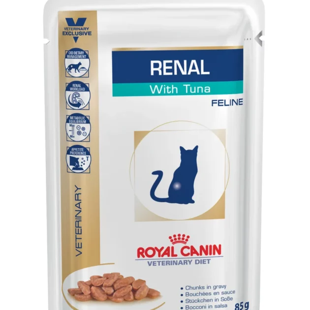 RENAL with Tuna is a complete dietetic feed for cats formulated:- to support renal function in the case of chronic or temporary renal insufficiency, through its low level of phosphorus and high quality protein- to reduce oxalate stone formation, through its low level of calcium and vitamin D, and its urine alkalising properties.RECOMMENDATIONS: It is recommended that a veterinarian’s opinion be sought before use or before extending the period of use. Initially feed RENAL with Tuna for up to 6 months in cases of chronic renal insufficiency and reduction of oxalate stone formation. For cases of temporary renal insufficiency a period of 2 to 4 weeks feeding is recommended.