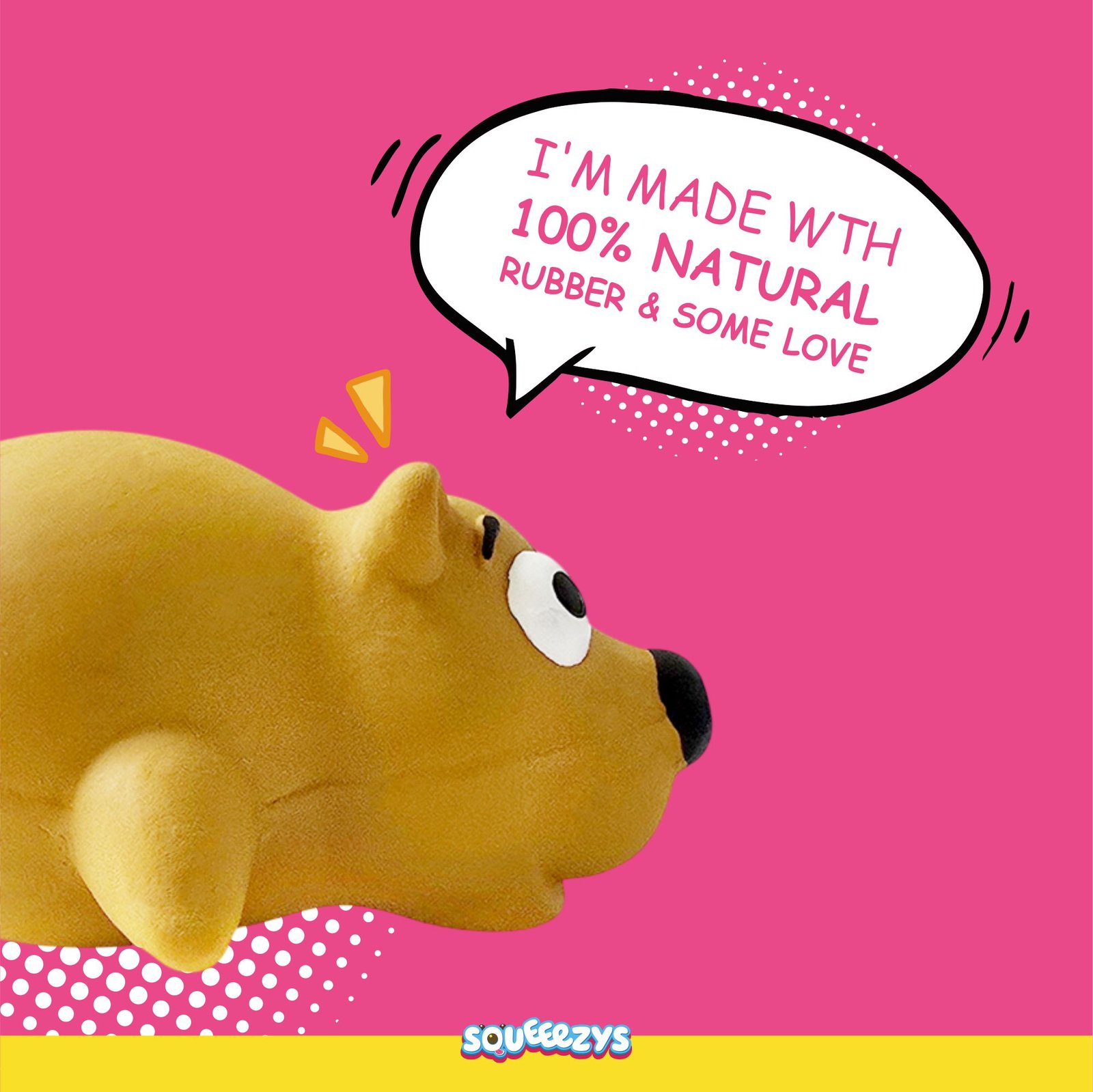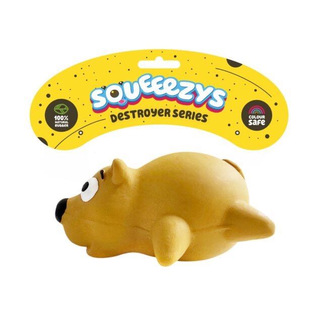 Hey there, future best buddy! I’m LITTLE BROWN BEAR! I’m not just any dog toy – I’m part of the Squeeezys Collection, a fun, homegrown dogs toys brand that keeps you entertained while giving your hooman peace of mind. I’m designed especially for extra small to medium-sized pups, with a durable yet gentle build that can handle all your playful bites and tugs. We’re going to have tons of fun together, making memories with each game of fetch, tug, and chew!