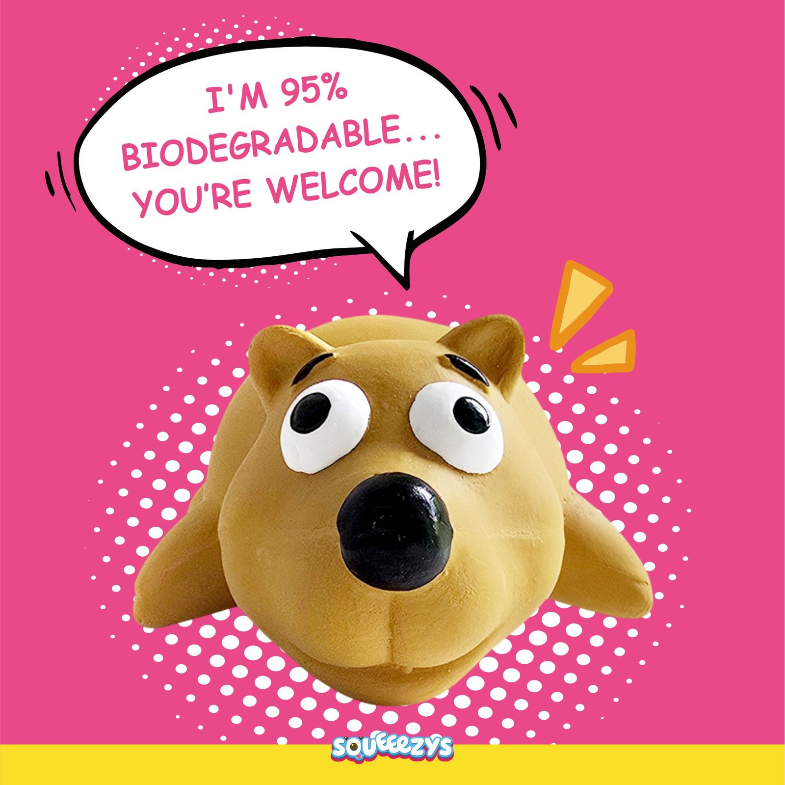 Did I mention I’m eco-friendly? Yep, I’m 95% biodegradable, so when our time together eventually comes to an end, I’ll return safely to nature. Playtime is fun, and with me, it’s also easy on the planet. And I know how much you love a good squeak – that’s why I’m one of the dog playing toys that come with a built-in squeaker that’ll keep you entertained, chase away boredom, and make every play session an exciting adventure!