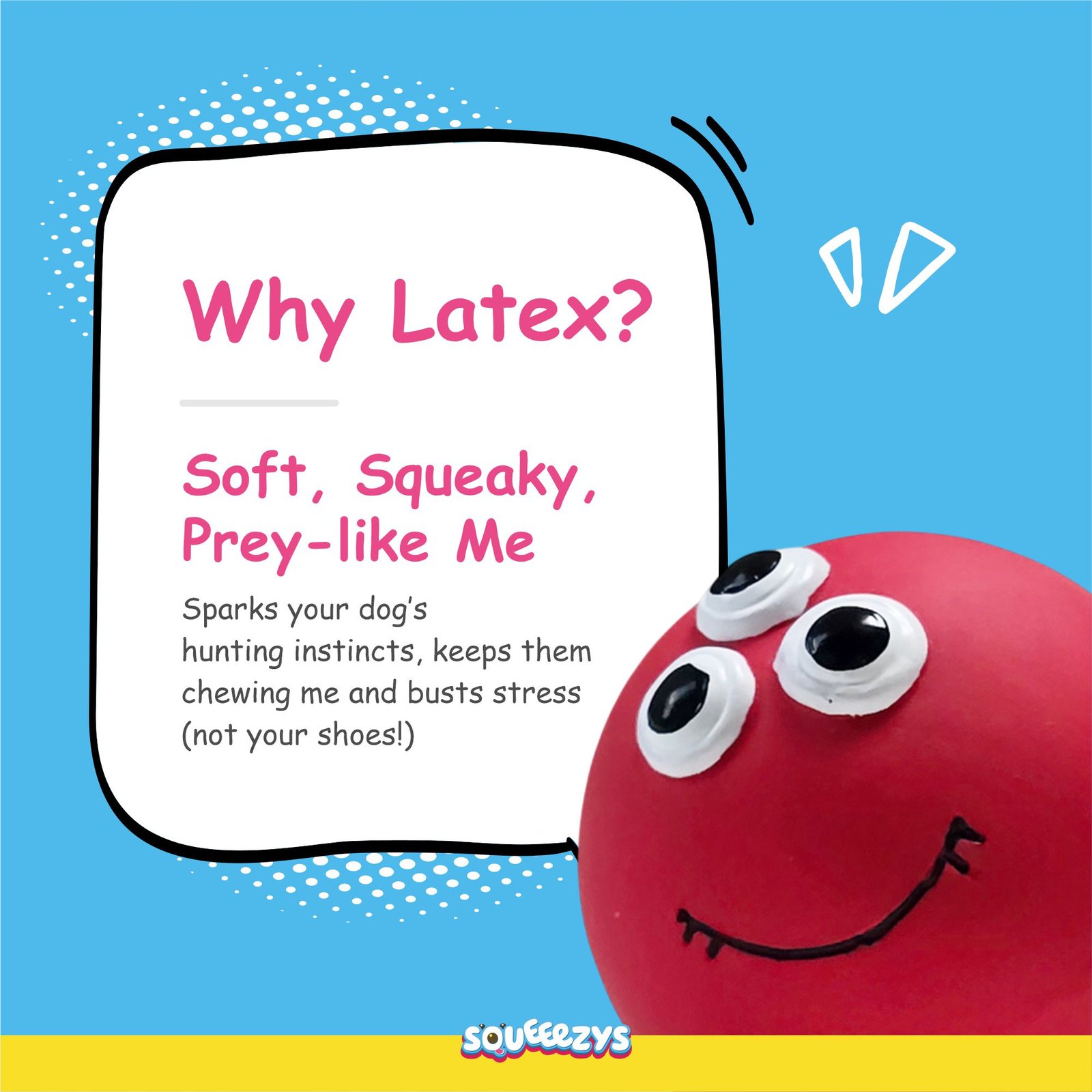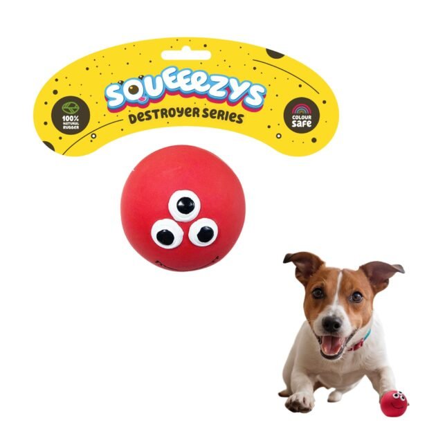 Hey there, future best buddy! I’m MONSTER BALL! I’m not just any dog toy – I’m part of the Squeeezys Collection, a fun, homegrown dogs toys brand that keeps you entertained while giving your hooman peace of mind. I’m designed especially for extra small to medium-sized pups, with a durable yet gentle build that can handle all your playful bites and tugs. We’re going to have tons of fun together, making memories with each game of fetch, tug, and chew!