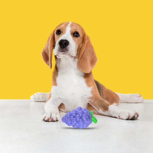 Introducing Barkbutler x Fofos Tough-Fruit Loud Grape, the ideal near indestructible chew toy for your medium to large dogs (10-30kgs) like Beagles, Indies, and similar breeds. This durable, fun, squeaky toy is designed with a robust TPR body, making it perfect for strong chewers, while its super loud squeaker adds excitement to your pet’s playtime. The unique bumpy texture massages teeth and gums, promoting dental health during chewing sessions. Although not recommended for extremely aggressive chewers, this chewy, squeezy, and squishy toy is perfect for engaging in interactive play & exercise with your furry friend.