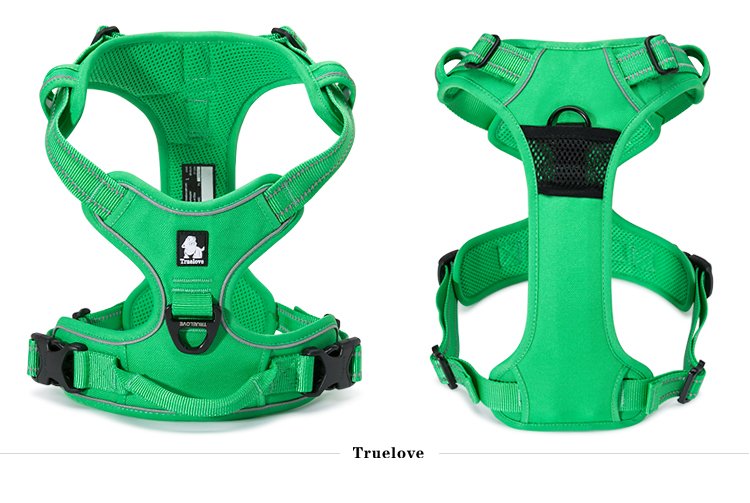 Barkbutler x Truelove’s Products. Resilient, military-grade, industrial-strength, and made to endure extreme weather conditions, It also incorporates comfort and style into all its pet products. Premium Service Dog Vest, No Pull Dog Harness with Reflective Straps, New Soft Mesh, and 2 Leash Attachments for All Size Dogs is a premium, high quality, professional dog harness. Made with a durable scratch-resistant, oxford material outer layer, ultra-comfortable soft mesh fabric with a padded inner layer. This reflective vest with reflective piping and webbing on its adjustable straps ensures that your pet is always visible, comfortable, and safe even in the early hours of the morning or at night. The dog harness has a sturdy handle through which you can loop the seat belt of your car to ensure that your pet has a safe and secure ride. The adjustable straps of the dog harness will give your pooch a perfectly comfortable custom fit. This adjustable dog harness comes with 2 leash attachments. A D-ring lightweight durable leash attachment on the dog’s back and an O-ring on the dog’s chest. Your service dog will be super comfortable with the ergonomic and innovative design and matching lightweight Duraflex buckle with large loading capacity which greatly improves the tensile strength of the harness. You will enjoy how easily it can be put on and taken off. This harness is available in vibrant colors and sizes. Order a matching leash, and take your dog out in style. Please refer to the sizing chart before ordering. The design and quality built into our dog harnesses ensure that your pet is safe, secure, comfortable, and protected wherever it goes