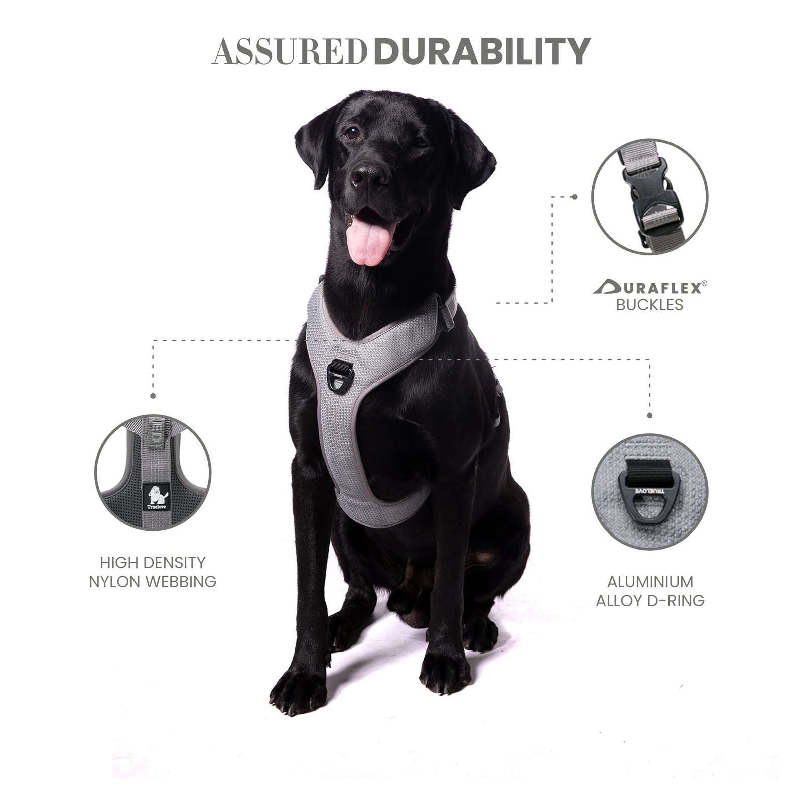 Barkbutler x Truelove Reflective No-Pull, no choke dog padded harness is the only H harness you need for your doggy. What makes Truelove pet vest one of the best in the world? This cute chest harness design has been equipped with patented, heavy load-bearing capacity Duraflex buckles for enhanced security, High-density nylon webbing for longevity, and the aluminium alloy D-rings keeps the harness light while maintaining durability. When it comes to comfort, the ultra-soft & comfortable, breathable air mesh with high elasticity sponge padding, combined with low friction soft nylon straps makes it an extremely comfortable choice for long & short walks. The 3M reflective stitching & piping by 3M Scotchlite – pioneers in Safety equipment around the world, makes walking in the dark with this dog body harness brighter & much safer. For the perfect fit, this harness is made adjustable at the chest & neck area. For maximum control, a Safety/Support handle has been provided on the back of the harness as well. Measure your pet before purchase, refer to the sizing chart in our product images section. Matching leash option available with this Y harness. Pro Tip: Does your dog pull? Connect the leash to the chest or front clip and say goodbye to pulling.
