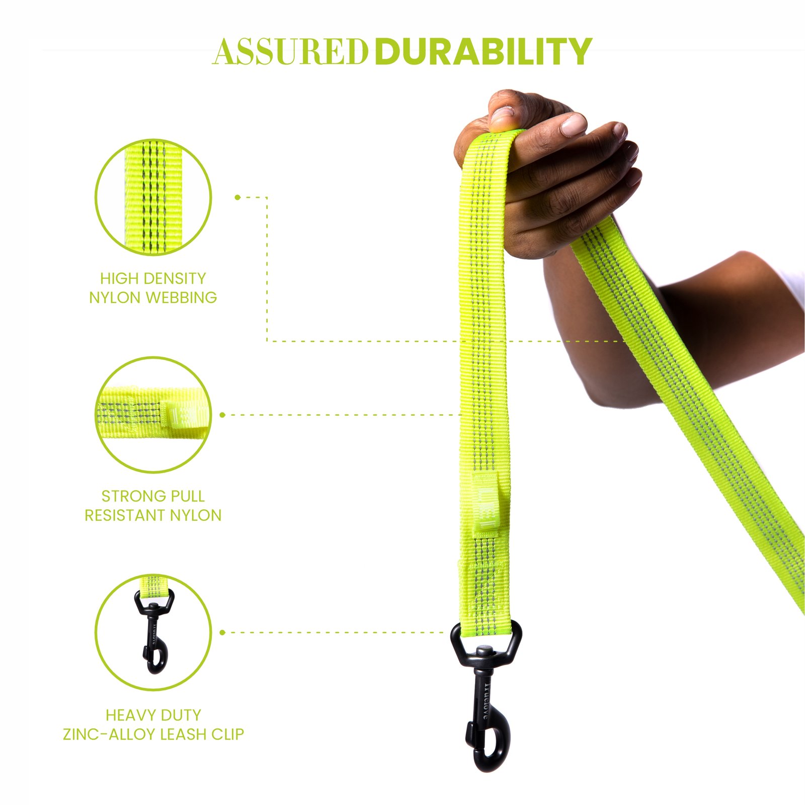 Barkbutler x Truelove Nylon Dog leash is the best cute, colourful leashes out there for walking your pet. The High-Density Nylon Webbing maintains longevity while the Strong Pull Resistant Nylon grants lasting durability. The Neoprene padded handle reduces the strain on your hand during stressful situations whilst also not falling victim to sweating and eventual loosening of the grip as it is water resistant. The overall leash is soft, light & tough which minimizes the chances of friction burns caused due to sudden, explosive movements. A Heavy Duty Zinc Alloy leash clip hooks the lead to the harness/collar and makes an unbreakable bond which only comes undone when the owner chooses to. The 3M reflective stitching & piping by 3M Scotchlite – pioneers in Safety equipment around the world, makes walking in the dark with this leash brighter & much safer. Looking for the perfect leash? Refer to our sizing chart in the product images section for the right pick. Matching harness options available with this leash. An additional loop has been provided to attach poop bag dispensers, led lights & other such accessories. Pro Tip: Does your dog pull? Connect the leash to the chest or front clip of a dog body harness and say goodbye to pulling.