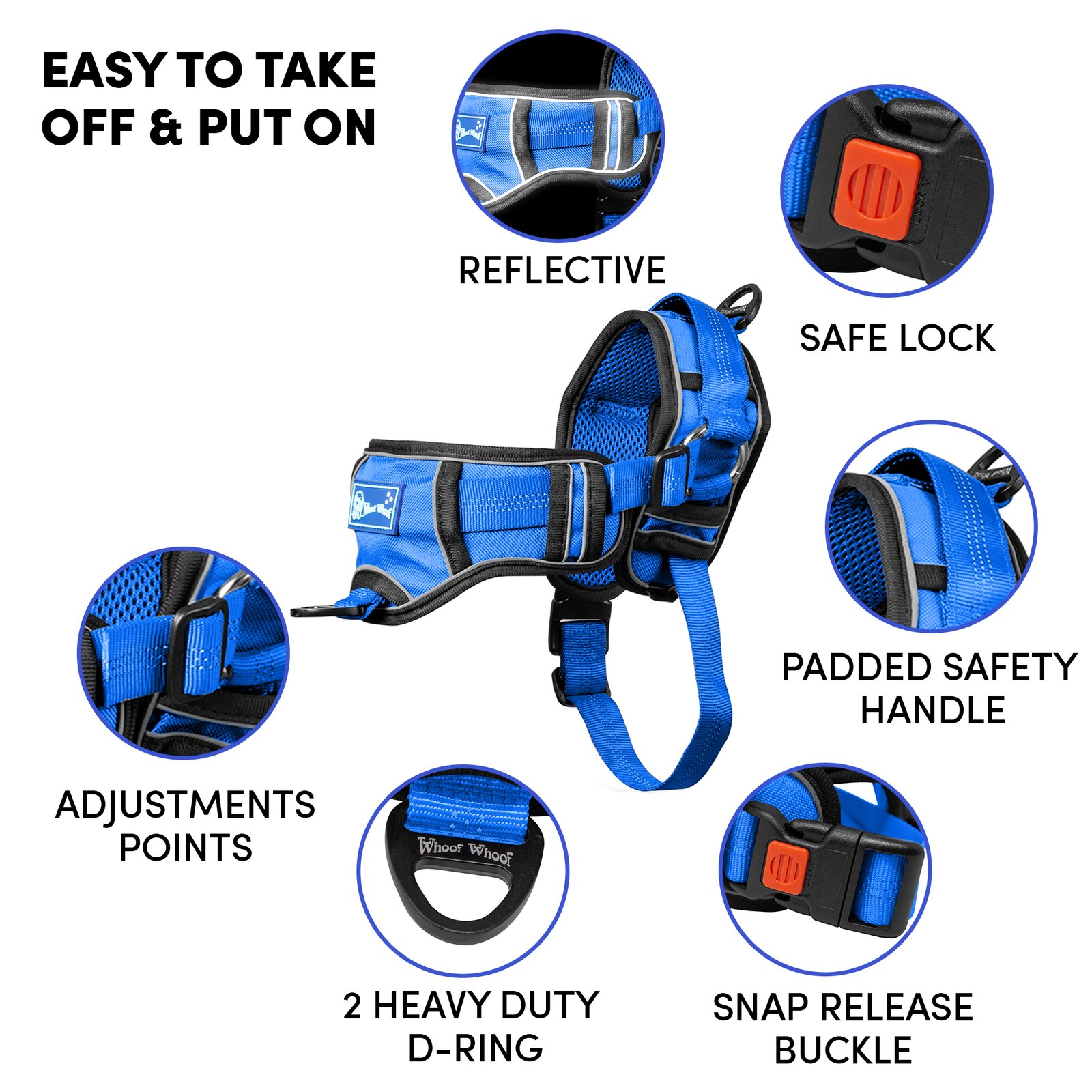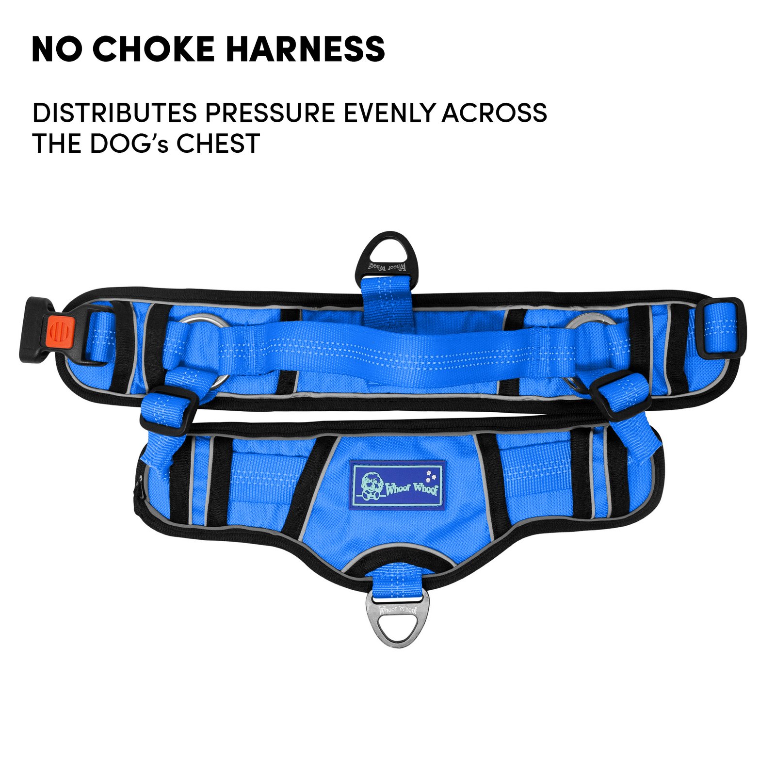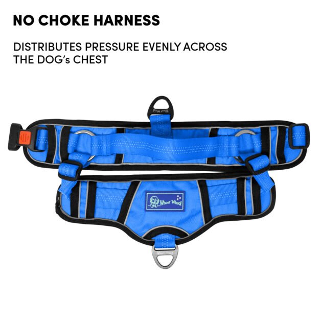 Barkbutler x Whoof Whoof Chocker Fully Padded Harness is safety first harness. The harness has no choke design, spreading the pressure evenly throughout the chest rather than solely on the neck. Soft breathable foam cushioning provides much comfort and coat friendliness for the dog. Reflective threading provides better visibility. Safe locks keep the snap release buckle in place. Heavy duty metal D-ring promotes durability. Adjustable points ensure a snug and perfect fit. Padded safety handles provided much support and control.