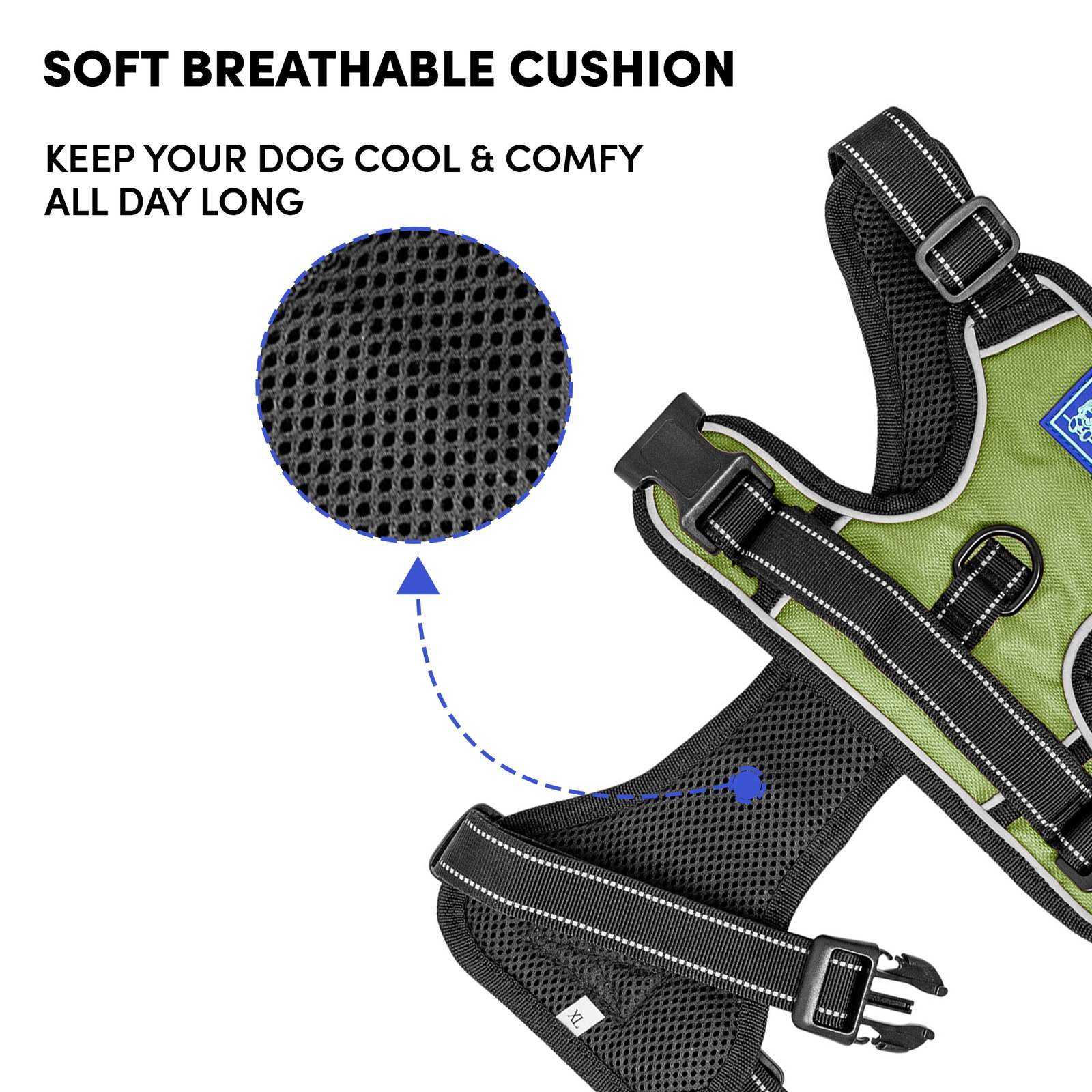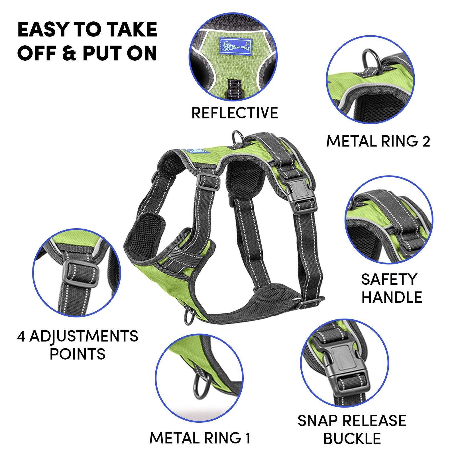 Barkbutler x Whoof Whoof Double Padded Harness provides dual support from the top and the bottom. It also has no choke design, spreading the pressure evenly throughout the chest rather than solely on the neck. Soft breathable cushioning provides much comfort and coat friendliness for the dog. Reflective threading provides better visibility. Safe locks keep the snap release buckle in place. Metal rings promote durability. Adjustable points ensure a snug and perfect fit.