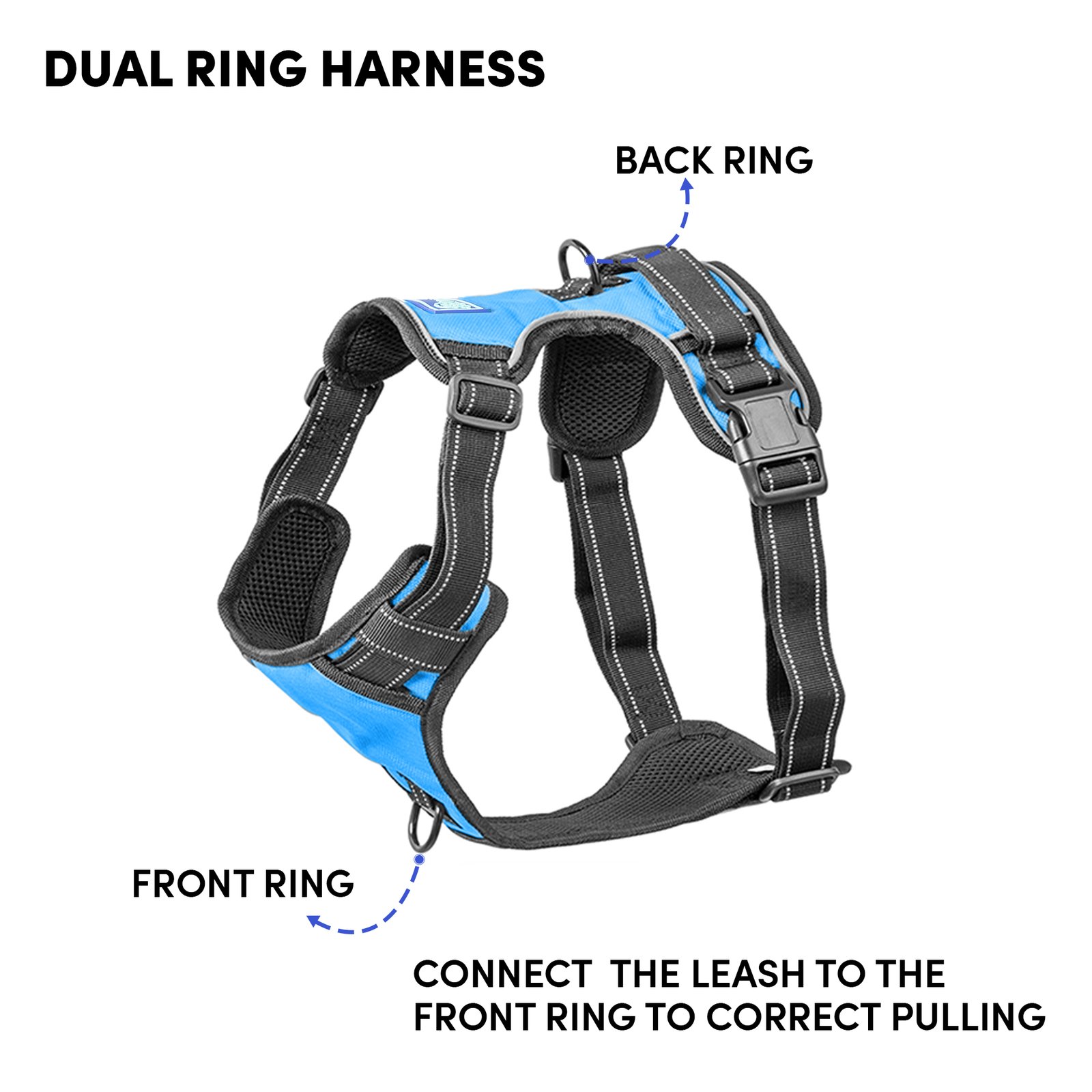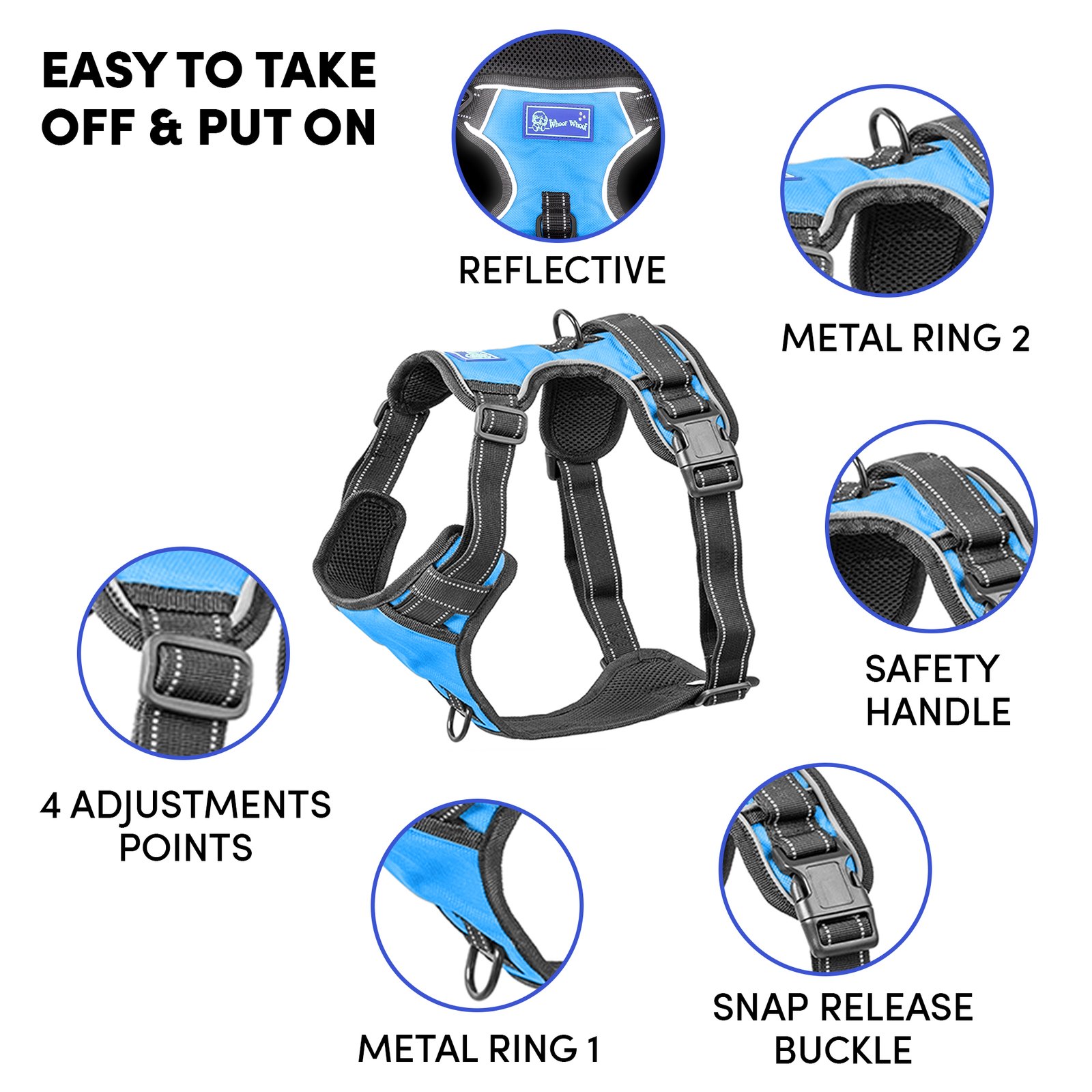Whoof Whoof DOUBLE PADDED HARNESS – XL Blue