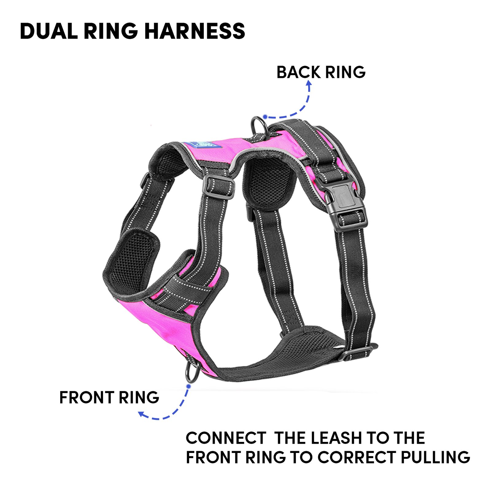 Barkbutler x Whoof Whoof Double Padded Harness provides dual support from the top and the bottom. It also has no choke design, spreading the pressure evenly throughout the chest rather than solely on the neck. Soft breathable cushioning provides much comfort and coat friendliness for the dog. Reflective threading provides better visibility. Safe locks keep the snap release buckle in place. Metal rings promote durability. Adjustable points ensure a snug and perfect fit.