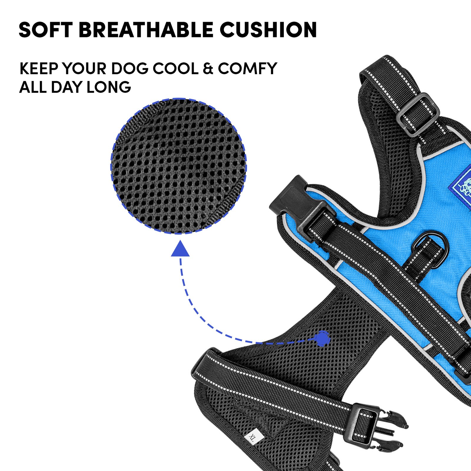 Whoof Whoof DOUBLE PADDED HARNESS – XS Blue