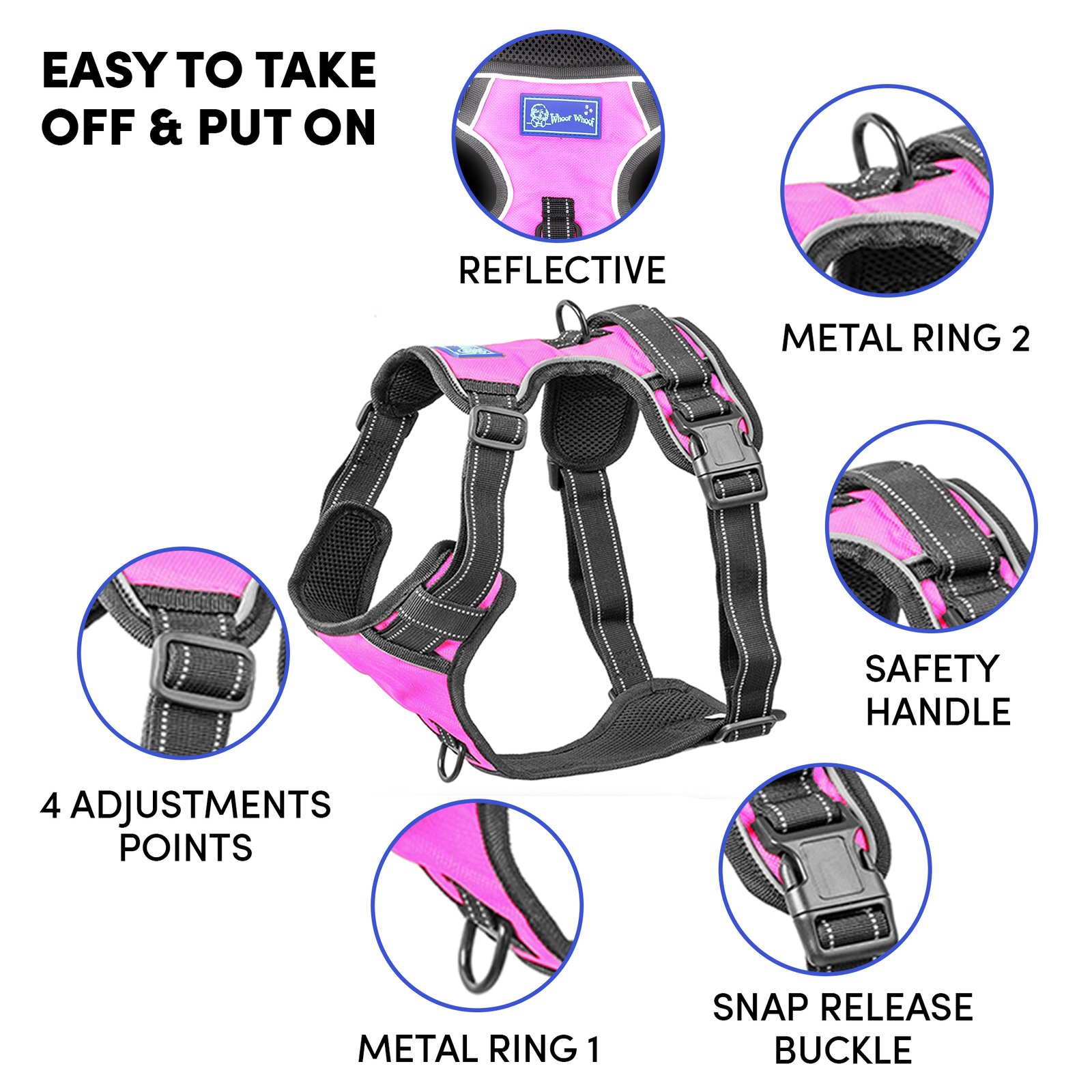 Whoof Whoof DOUBLE PADDED HARNESS – XS Pink