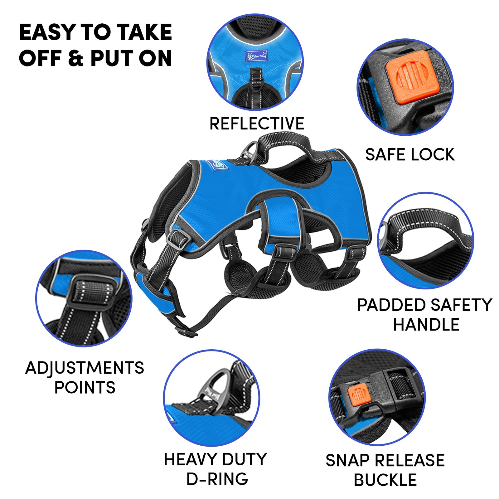 • Whoof Whoof FULL BODY THREE LAYER BELT HARNESS – M Blue