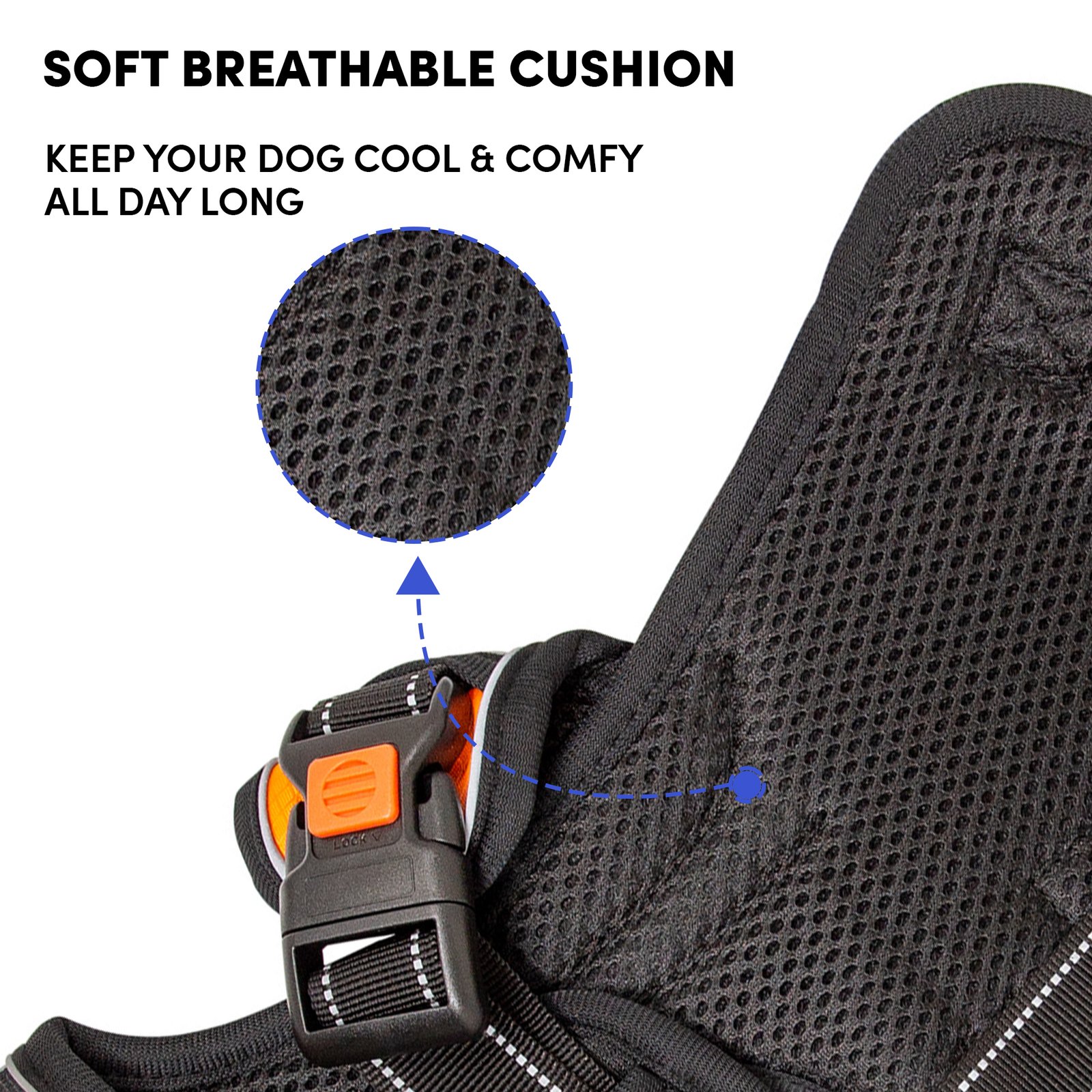 Barkbutler x Whoof Whoof Three Layer Harness provides much needed support and control to doggo on the go. Reflective thread and strips woven for better visibility. Safe locks to prevent jerks. Padded safety handles for strain prevention. Heavy duty D-ring for unleashing prevention. Adjustment point for a snug, perfect fit. No choke harness spreads pressure evenly rather than just the neck area. Soft breathable cushions are coat friendly and provide much needed comfort. Escape proof dog harness for a fussy, runny doggo. Also has a support harness for senior dogs.