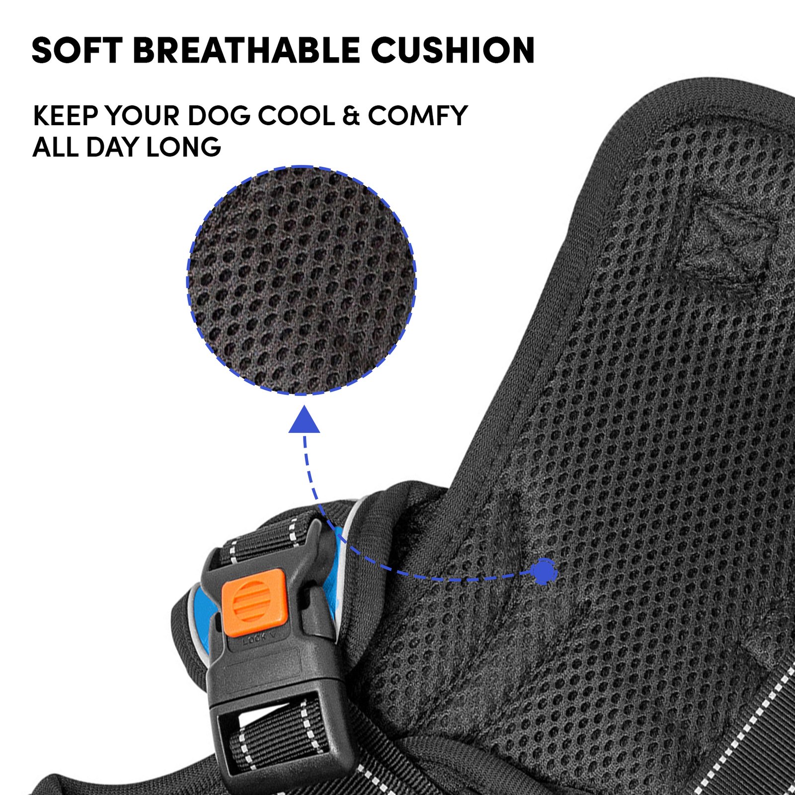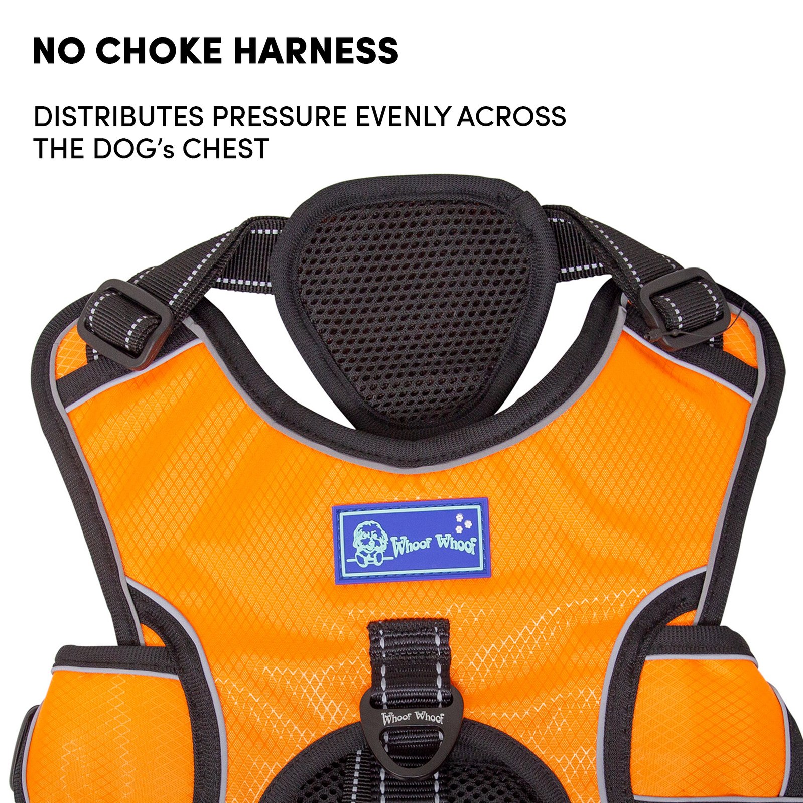 Barkbutler x Whoof Whoof Three Layer Harness provides much needed support and control to doggo on the go. Reflective thread and strips woven for better visibility. Safe locks to prevent jerks. Padded safety handles for strain prevention. Heavy duty D-ring for unleashing prevention. Adjustment point for a snug, perfect fit. No choke harness spreads pressure evenly rather than just the neck area. Soft breathable cushions are coat friendly and provide much needed comfort. Escape proof dog harness for a fussy, runny doggo. Also has a support harness for senior dogs.