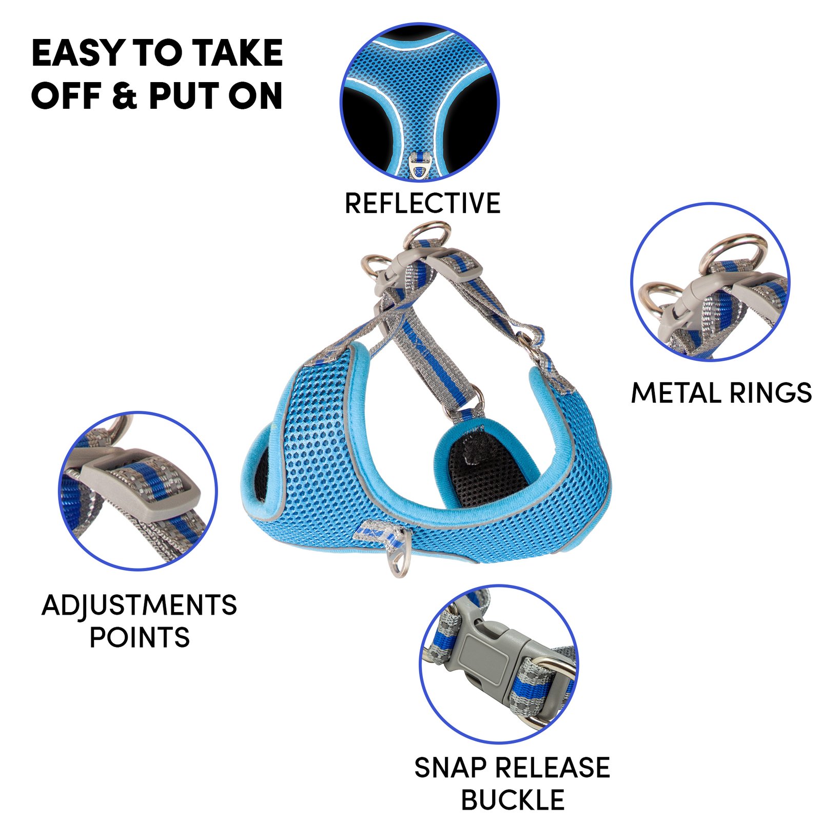 Whoof Whoof MEASH HARNESS +LEASH – 2XL/M Blue