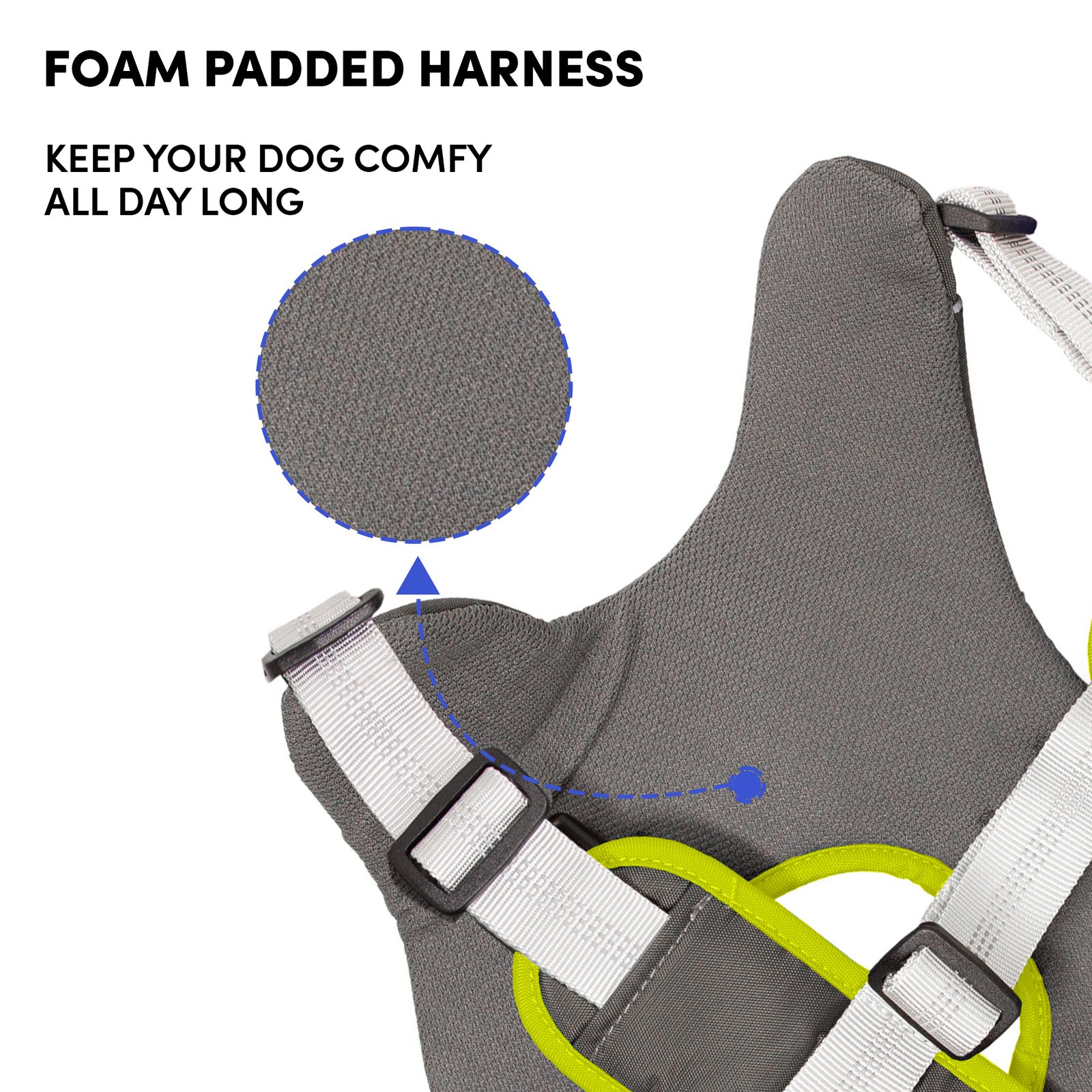 Barkbutler x Whoof Whoof Premium Harness is a bang for your buck. The harness has no choke design, spreading the pressure evenly throughout the chest rather than solely on the neck. Soft breathable foam cushioning provides much comfort and coat friendliness for the dog. Reflective threading provides better visibility. Safe locks keep the snap release buckle in place. Heavy duty metal D-ring promotes durability. Adjustable points ensure a snug and perfect fit. Padded safety handles provided much support and control.