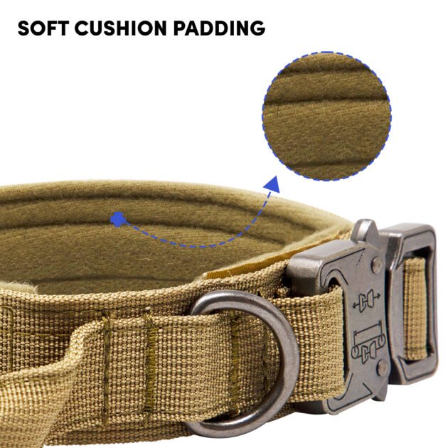 Barkbutler x Whoof Whoof Tactical Collar is a fully padded military collar. Soft breathable cushioning provides much comfort and coat friendliness for the dog. Safe locks keep the snap release buckle in place. Heavy duty D- rings promote durability. Adjustable points ensure a snug and perfect fit. Dedicated Hook and Loop Panel for badges. 1000D Reinforced Nylon Fabric ensures no breakage or degradation after long time use and tug.