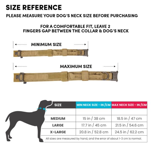 Barkbutler x Whoof Whoof Tactical Collar is a fully padded military collar. Soft breathable cushioning provides much comfort and coat friendliness for the dog. Safe locks keep the snap release buckle in place. Heavy duty D- rings promote durability. Adjustable points ensure a snug and perfect fit. Dedicated Hook and Loop Panel for badges. 1000D Reinforced Nylon Fabric ensures no breakage or degradation after long time use and tug.