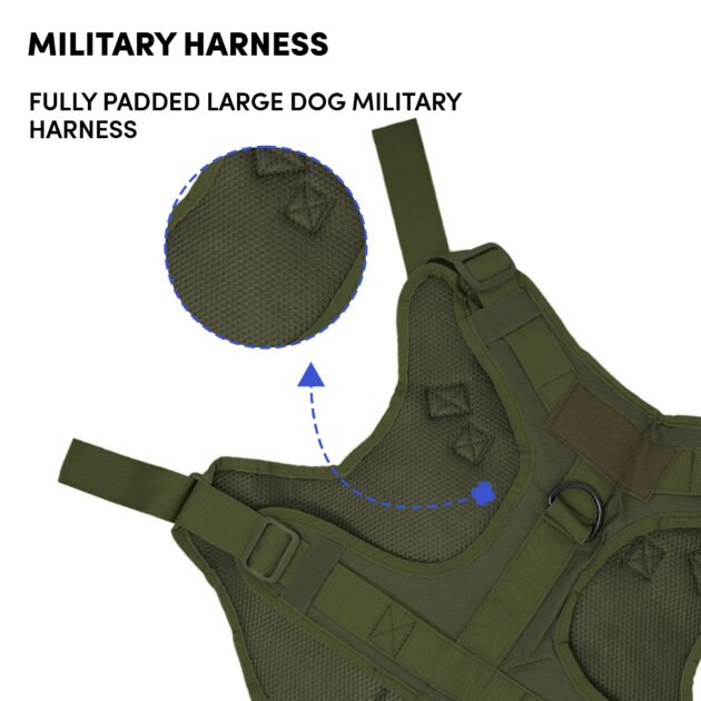 Barkbutler x Whoof Whoof Tactical Harness is a fully padded large dog military harness. It also has no choke design, spreading the pressure evenly throughout the chest rather than solely on the neck. Soft breathable cushioning provides much comfort and coat friendliness for the dog. Reflective threading provides better visibility. Safe locks keep the snap release buckle in place. Heavy duty D- rings promote durability. Adjustable points ensure a snug and perfect fit. Dedicated Hook and Loop Panel for badges. Hand wash is recommended to get tough to reach places.