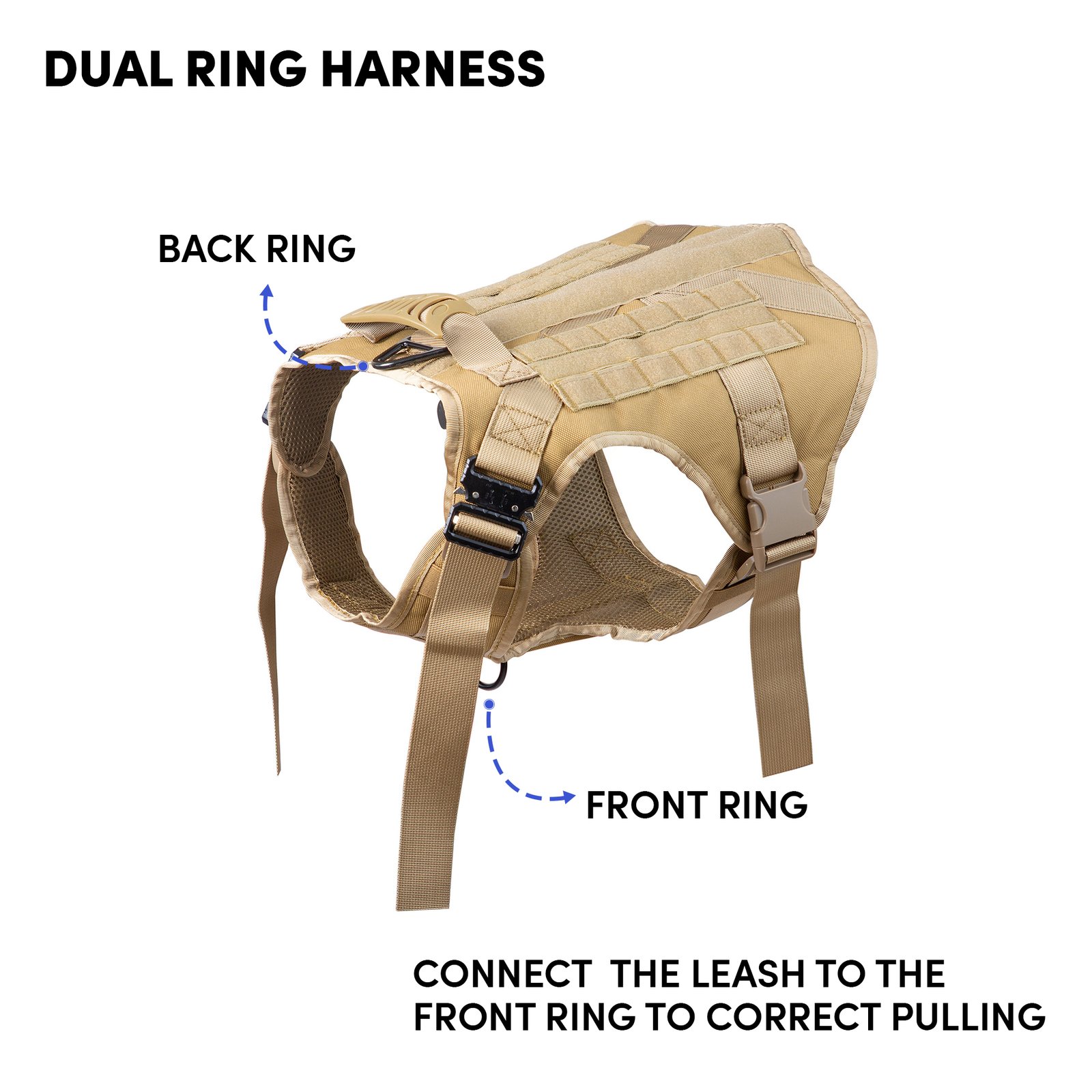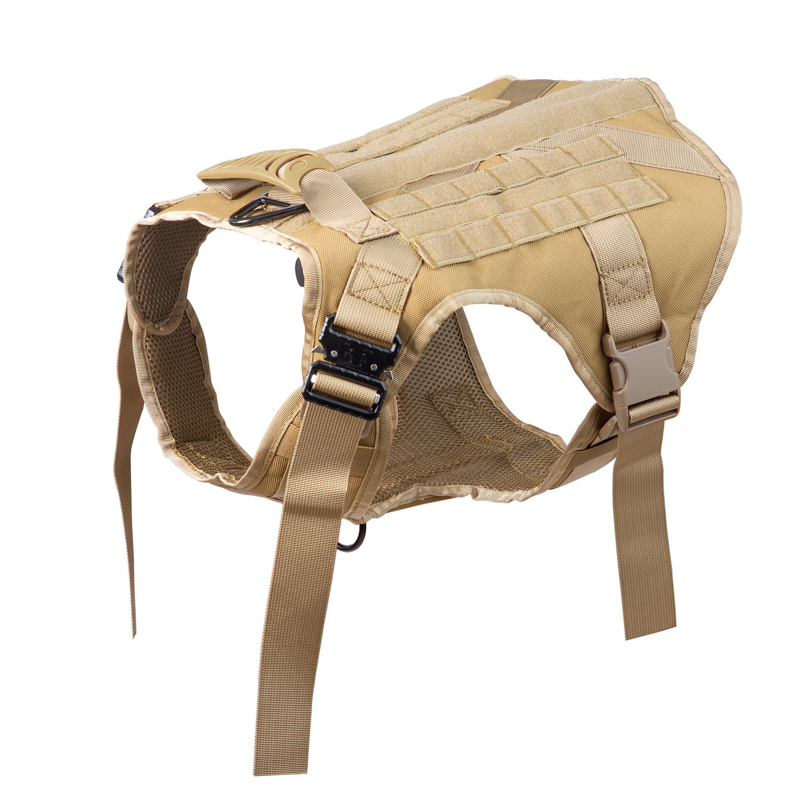 Barkbutler x Whoof Whoof Tactical Harness is a fully padded large dog military harness. It also has no choke design, spreading the pressure evenly throughout the chest rather than solely on the neck. Soft breathable cushioning provides much comfort and coat friendliness for the dog. Reflective threading provides better visibility. Safe locks keep the snap release buckle in place. Heavy duty D- rings promote durability. Adjustable points ensure a snug and perfect fit. Dedicated Hook and Loop Panel for badges. Hand wash is recommended to get tough to reach places.