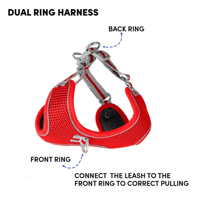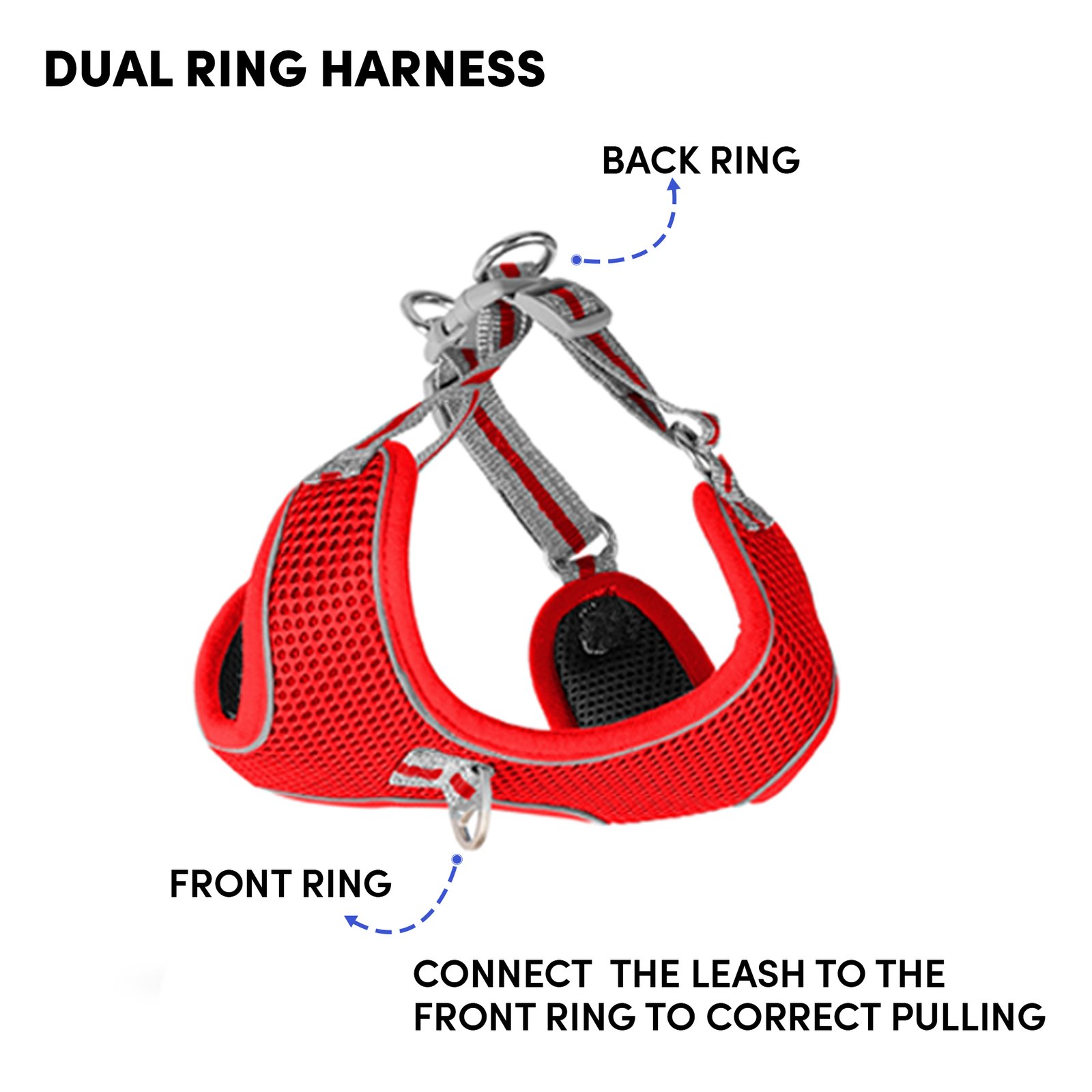 • Whoof Whoof TOYBREED MESH HARNESS WITH LEASH L – RED