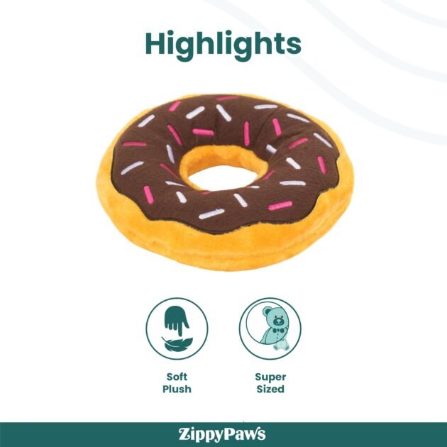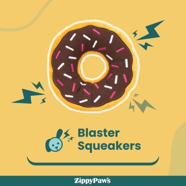 “Go big or go home with the ZippyPaws Jumbo Donutz — the plush squeaky toys for dogs made for dogs with an appetite for fun! Specially sized for medium to large dogs (10–30 kgs), this oversized version of the beloved Donutz toy brings extra squish, extra squeak, and extra satisfaction to every play session. Whether your doggy loves to carry, shake, or wrestle their toys, the Jumbo Donutz dog toys for large dogs are up for the challenge — and built to impress. At the core of all that fun are two Blaster Squeakers, ready to deliver loud, proud squeaks with every chomp. These aren’t your average squeakers — they’re bold, boisterous, and guaranteed to get tails wagging and ears perking up. Designed for dogs who like their toys for dog fun, noisy and wild, this toy keeps things exciting from the first bite to the final flop. Wrapped in a soft plush exterior, the Jumbo Donutz dog toys for medium dogs are gentle on teeth and perfect for snuggling after a long day of fetch or tug. The cozy texture makes it a comforting cuddle buddy, while the playful design ensures it can handle some serious action. And with its super-sized donut shape, it’s perfect for full-body play — no more little toys getting lost under the couch or overlooked by big dogs with even bigger energy. ZippyPaws Jumbo Donutz — stuffed with squeaky attitude, packed with plush comfort, and ready for larger-than-life play. Because big dogs deserve big fun.”