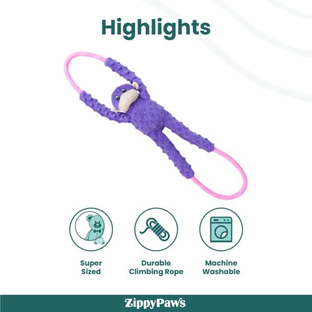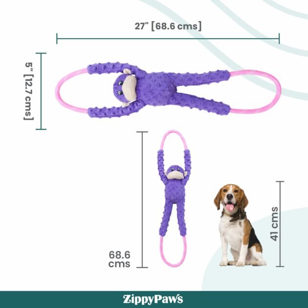 Bring on the tug-of-war with ZippyPaws RopeTugz — the super-sized monkey toy for dog tug-of-war that’s ready to swing into action! Designed for small to large dogs (5–30 kgs), these dog playing toys combine the cuddly charm of a stuffed animal with the tough, chew-friendly strength of climbing rope, making it the ultimate toy for pups who love to pull, play, and pounce.