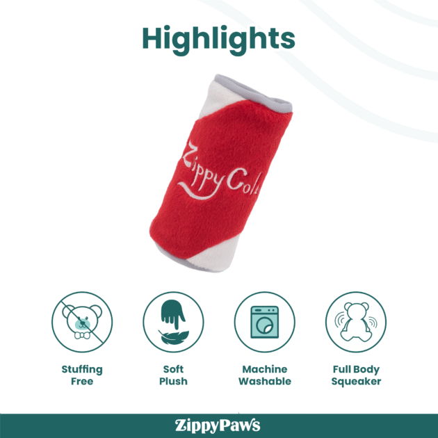 Wrapped in a soft plush exterior that’s gentle on teeth and perfect for snuggle sessions, this toy is as comforting as it is entertaining making it perfect as puppy toys or pet toys for dogs adult. Plus, thanks to the stuffing-free design of these toys for puppies, you get all the tail-wagging fun without any messy cleanup after a rough-and-tumble play session with these dogs toys. Like all ZippyPaws creations, the Squeakie Can Zippy Cola is carefully curated by mindful pet parents and rigorously tested by the real experts — our pets — to make sure these toys for dog are both safe and satisfying. Whether it’s a wild game of fetch or a cozy afternoon cuddle, this fizzy little can delivers endless moments of happiness straight from paw to heart.