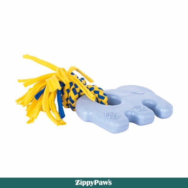 What sets this teether apart? Its dog-friendly colours — blue and yellow — which are easy for dogs to see, track, and get excited about. No more hunting for toys under the couch — Elliot stands out and stays fun.
